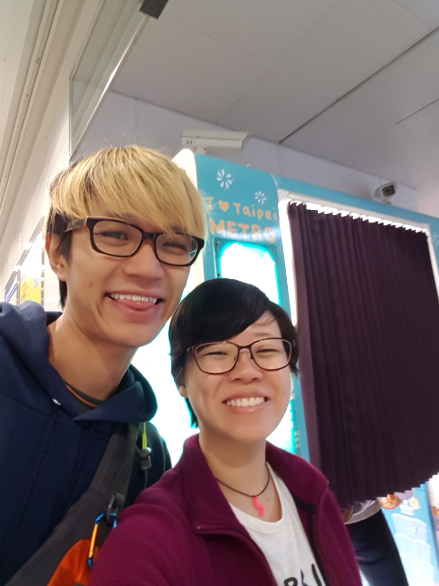 When we arrived back at the station we found this photo booth! And since we always take purikura in Tokyo, we figured we'd try it in Taipei too! But it was occupied at the time, so we decided to be on our way first. We'd probably come across another photo booth at another station anyway.