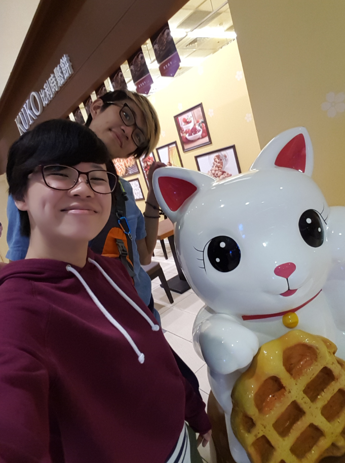 There were so many flavours to choose from; and her being a cat reminded me of our favourite waffle place in Osaka that also had a cat mascot; called Maison de gigi!