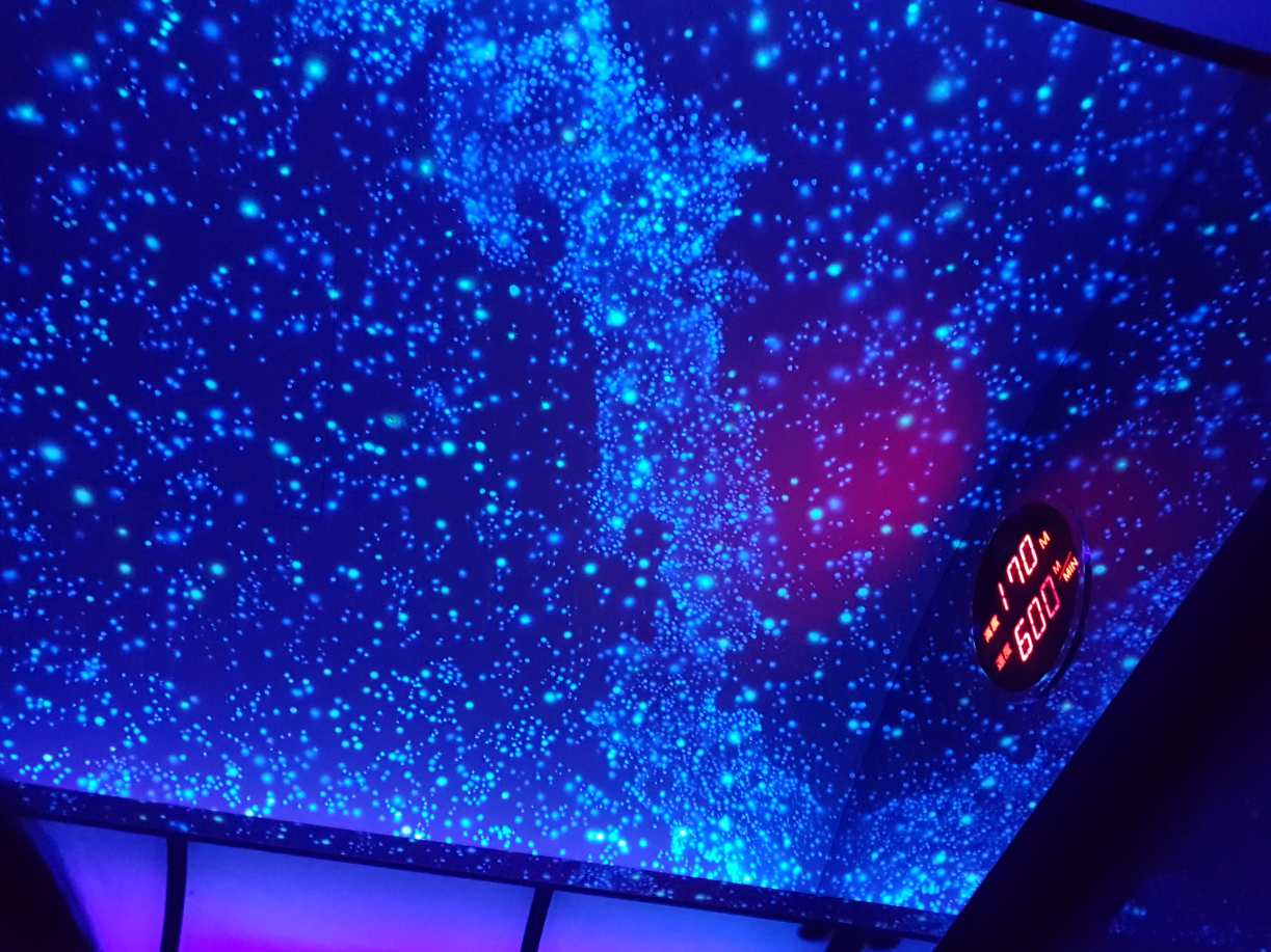 As we went further up, the elevator got darker and the ceiling changed! There was also a screen showing how high and fast we were going. Apparently, these elevators are capable of speeds of 10.17 m/s!