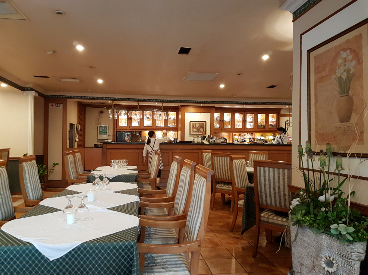 From the orange tiles to the natural wood furnishings and the striped cushioned chairs, it definitely gave off a rustic European summer house vibe.