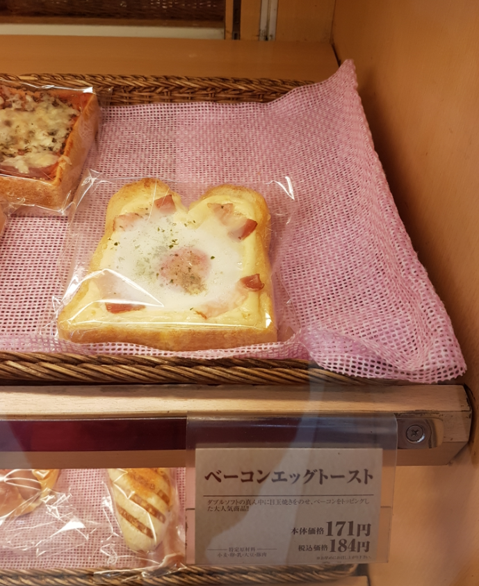 I don't remember if this was the first time we ate this bread, but it's my favourite thing to get at FamilyMart. Unfortunately it's only available at select FamilyMarts; the ones with their own in-house bakery so you really need to search for it. This is definitely their best breads though; a sunny side up, bacon pieces and cheese inside of a thick toast slice. Yummy!