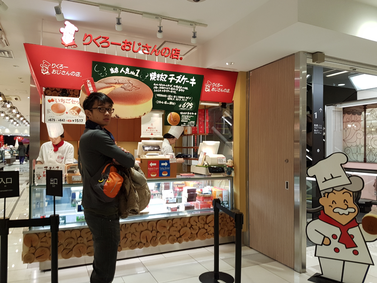 At Osaka station, we found the famous Uncle Rikuro's cheesecake shop! We've seen videos of it on Facebook, where the cheesecakes were so fluffy they would jiggle just from being touched. That sounds wrong but if you know, you know.