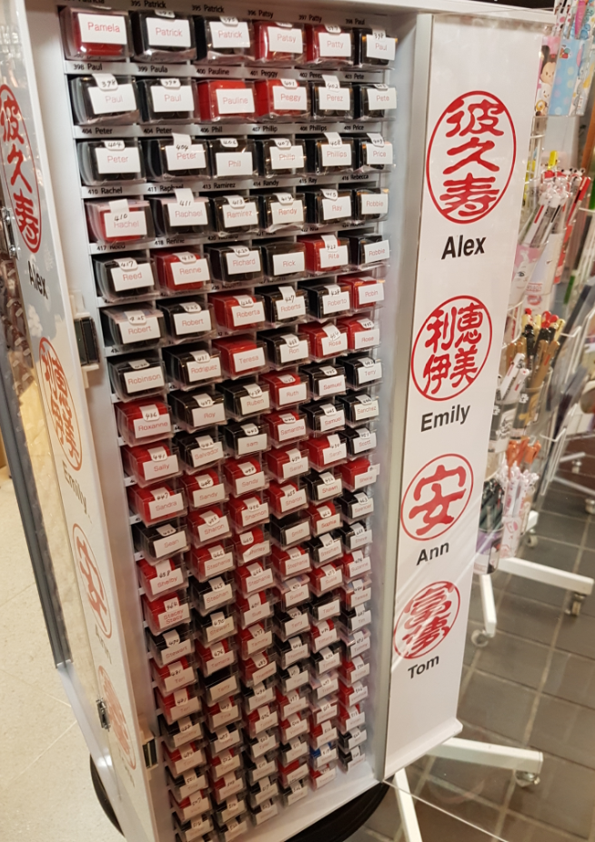 They even had a stand of personal name stamps! Just like the ones the shoguns would use as a personal signature to approve documents and such. But of course, these were English names translated into Kanji.