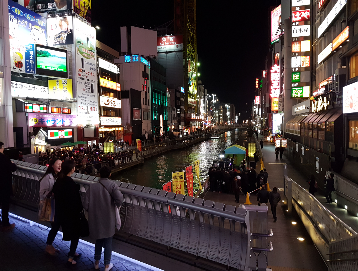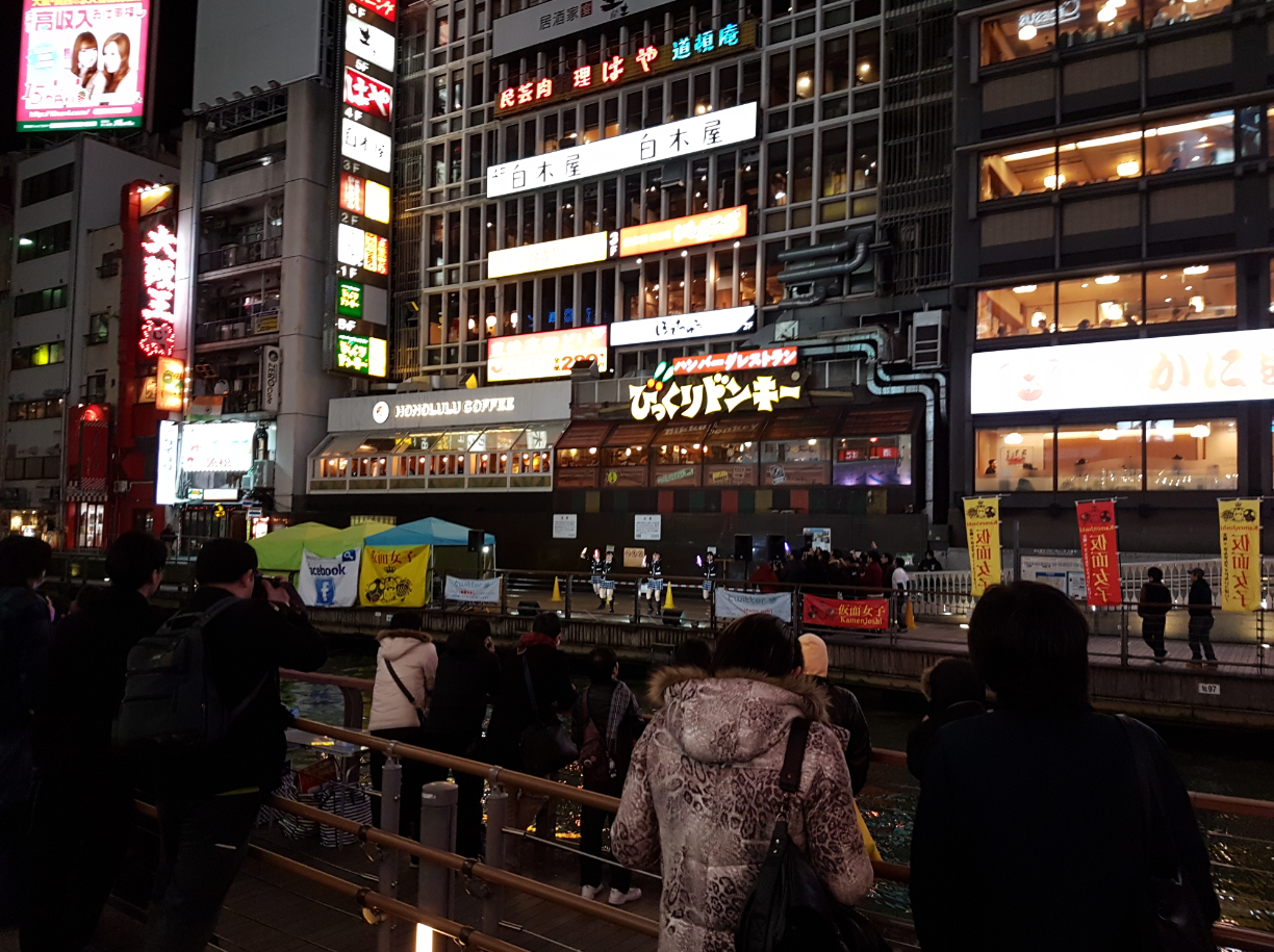 There was a whole mass of people crowding around a section of the Dotonbori canal and we were curious so we went to check it out.