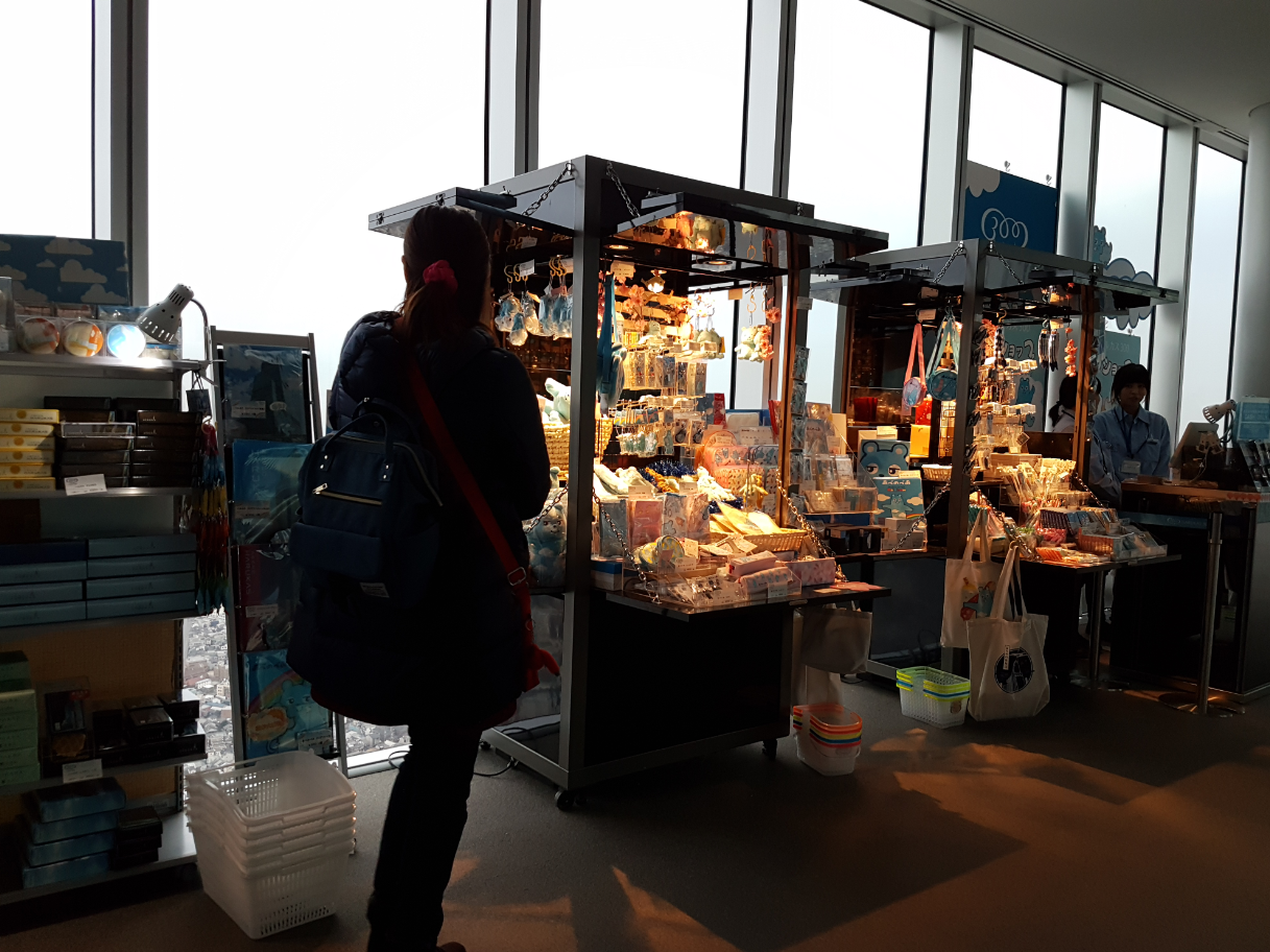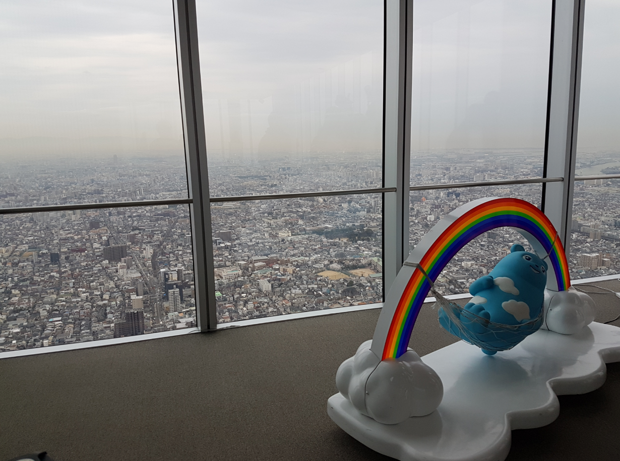 I guess this is the Harukas mascot.? Apparently his name is Abeno Bear, and he's a carefree sky-patterned bear who walks on rainbows and eats clouds!