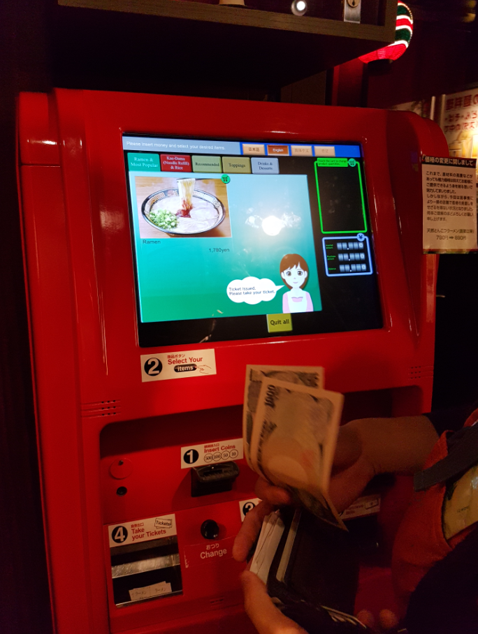 Anyway, we queued up and entered the restaurant and as always, ordered from the vending machine in the line.