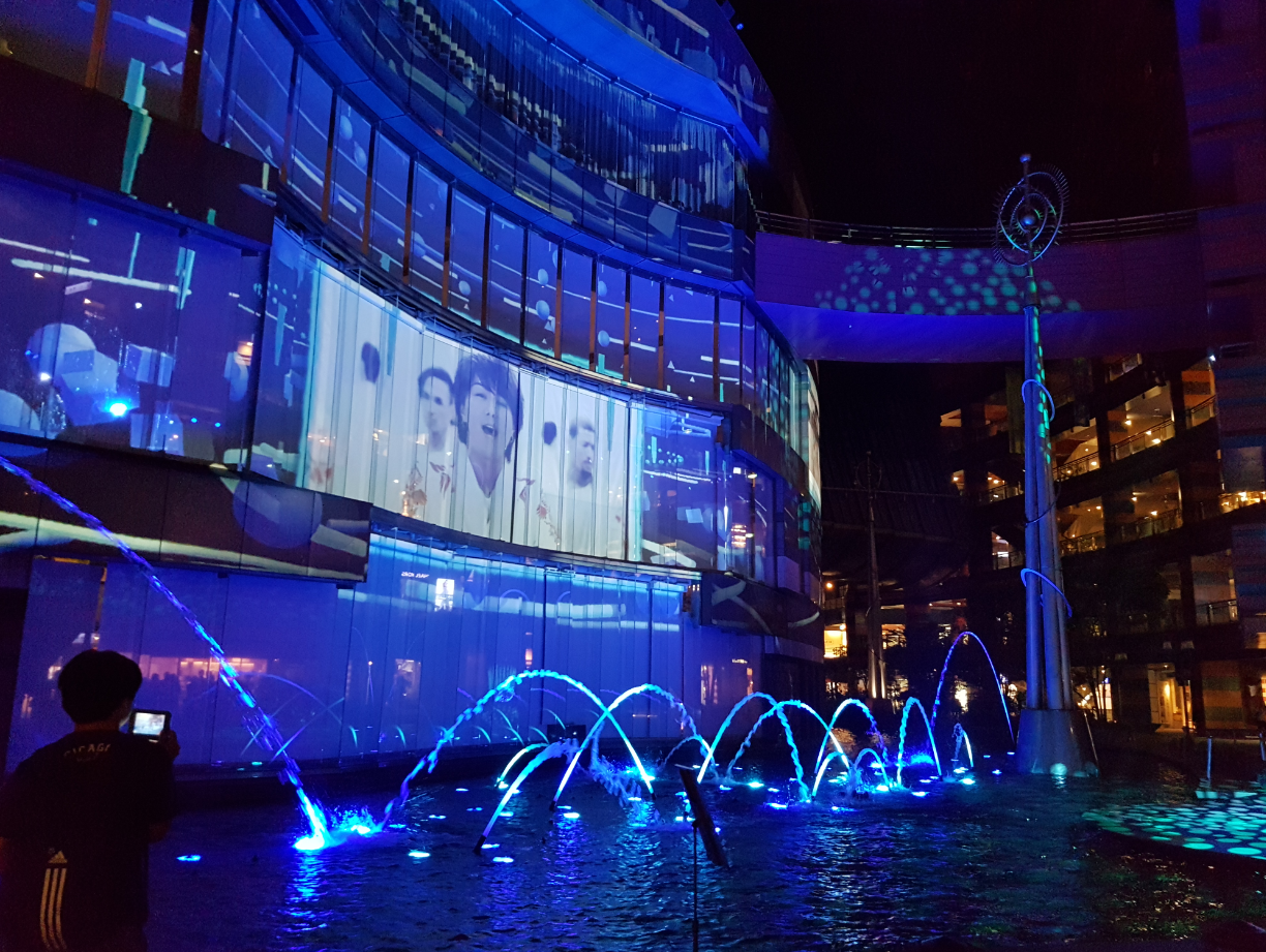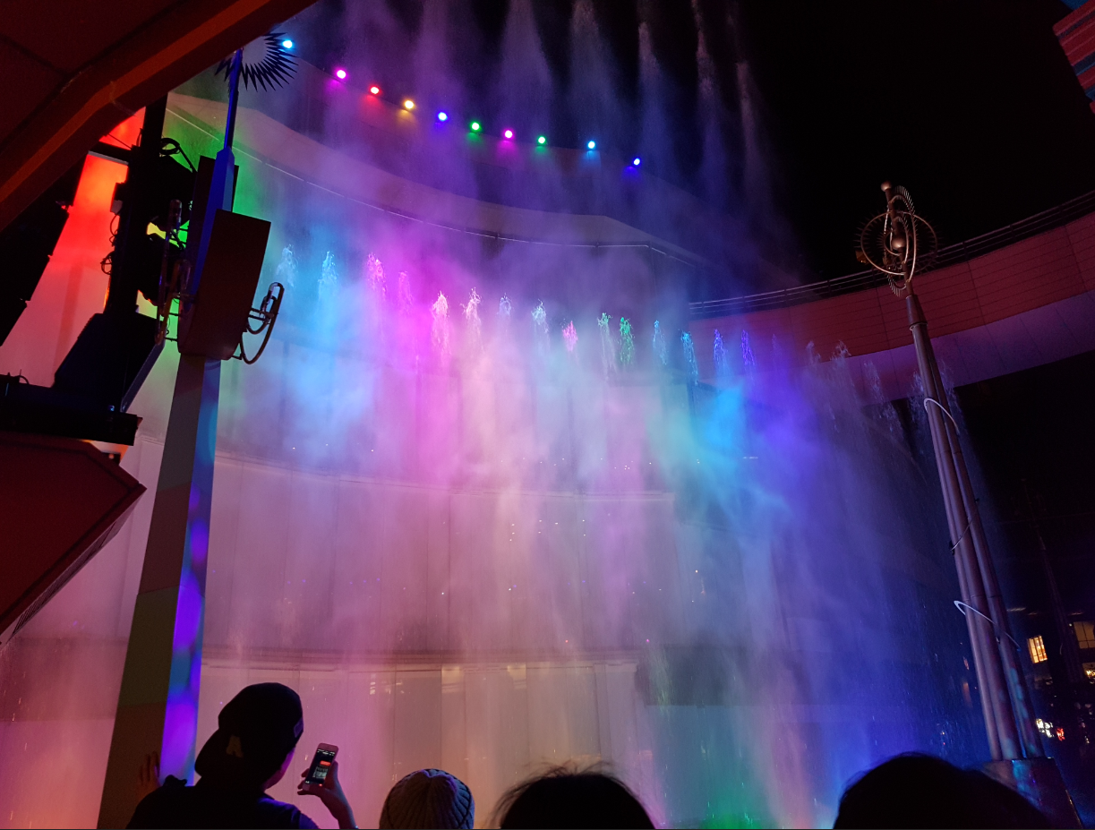 The place kinda smelled of chlorine but the rainbow lights were so pretty, reflecting in the fountains.