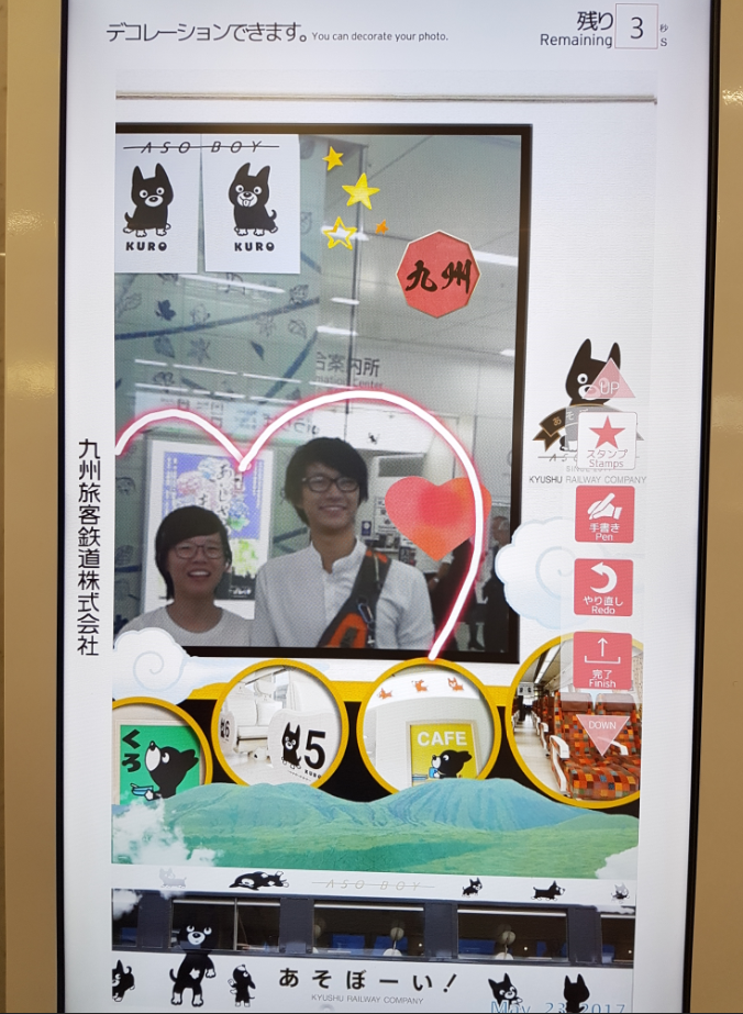 After that I think we headed to JR Hakata City to see more of the mall since we didn't fully explore it the first night. They had this weird purikura machine that was angled way too high that we were barely in frame.