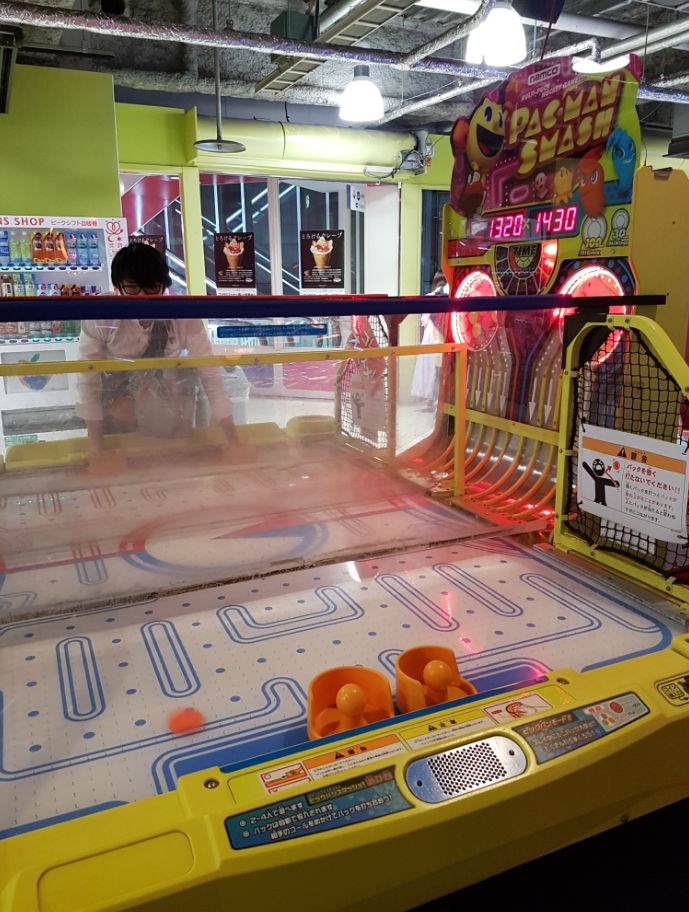 And of course, we ended the day by playing some games at the arcade! Like Pacman air hockey: