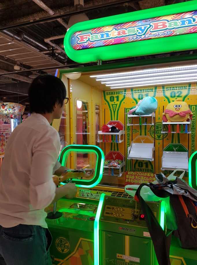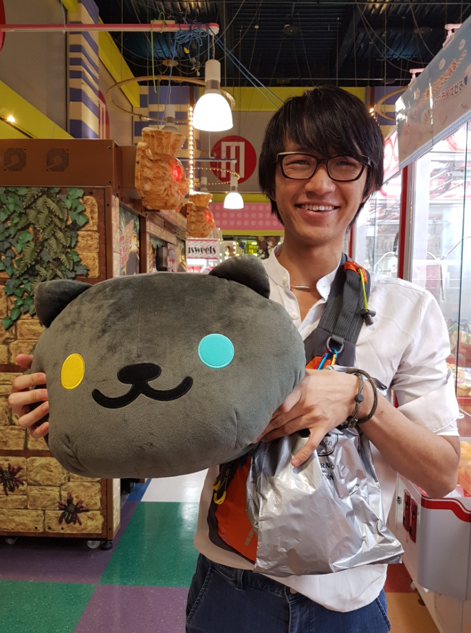 The best one yet - a neko atsume crane machine with huuuge plush toys! And guess what - we actually won!!!