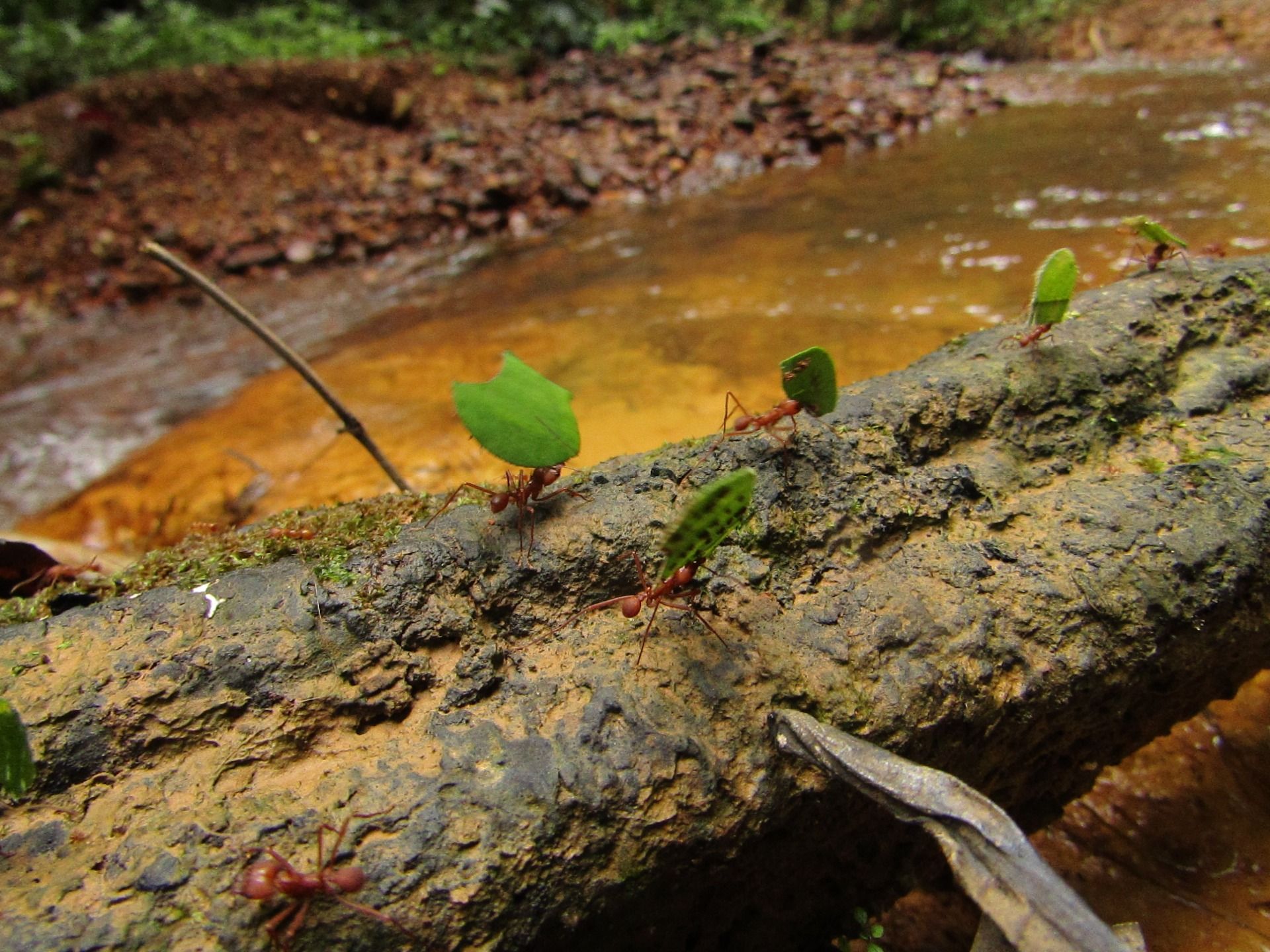I spent a couple of minutes watching them carrying leaves, from one place to another, and the smallest ants, not strong enough, were actually attached to the leaves in a clever way to not allow the big ones to carry more than they should. An amazing force distribution, that shows a lot of intelligence from these tiny insects.