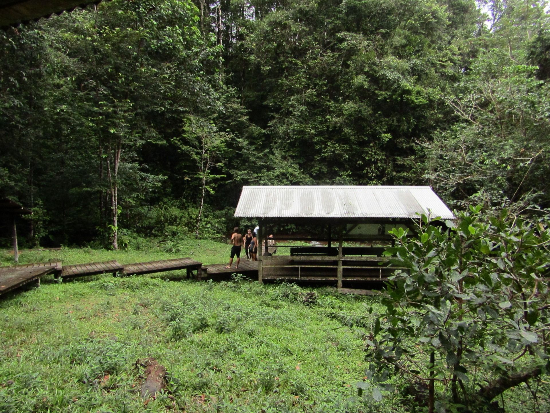 The "carbet" has 3 different wooden shelters, one that serves as a common space to eat, drink, have laughs together, tell stories that only the rainforest can hear. And two other places to handle the hammocks. These two shelters have place for 18 - 20 hammocks, so one good rule of this trail is to go very early in the morning to be lucky enough to find a spot.