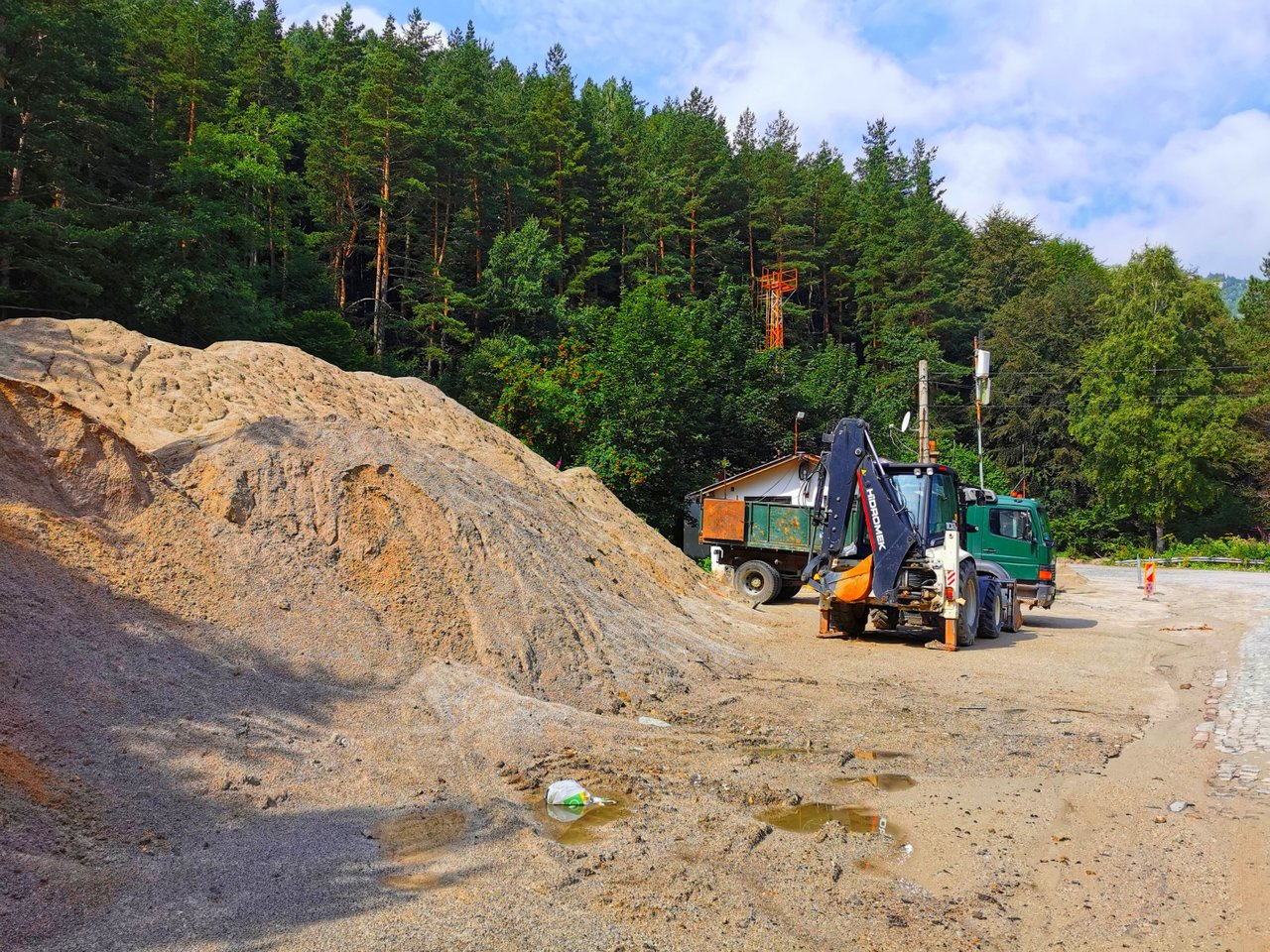 This sand is kept and used every winter to help unfreeze the road along with some chemicals and salt. Otherwise, it would be impossible for a vehicle to traverse.