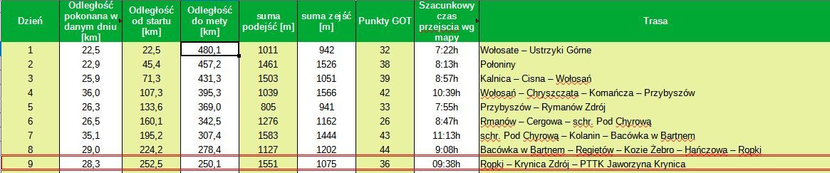 Jesteśmy prawie w połowie szlaku, o czym informuje drogowskaz ustawiony przed Chatą Wędrowca. Dzisiaj teoretycznie można by pokonać odcinek szlaku aż do schroniska na Hali Łabowskiej. To co prawda około 45 kilometrów jednak poza podejściem na Jaworzynę Krynicką teren jest w miarę prosty. Taką decyzję podejmuje spotkany przez nas na szlaku turysta, który również spał dziś w Chacie Wędrowca.