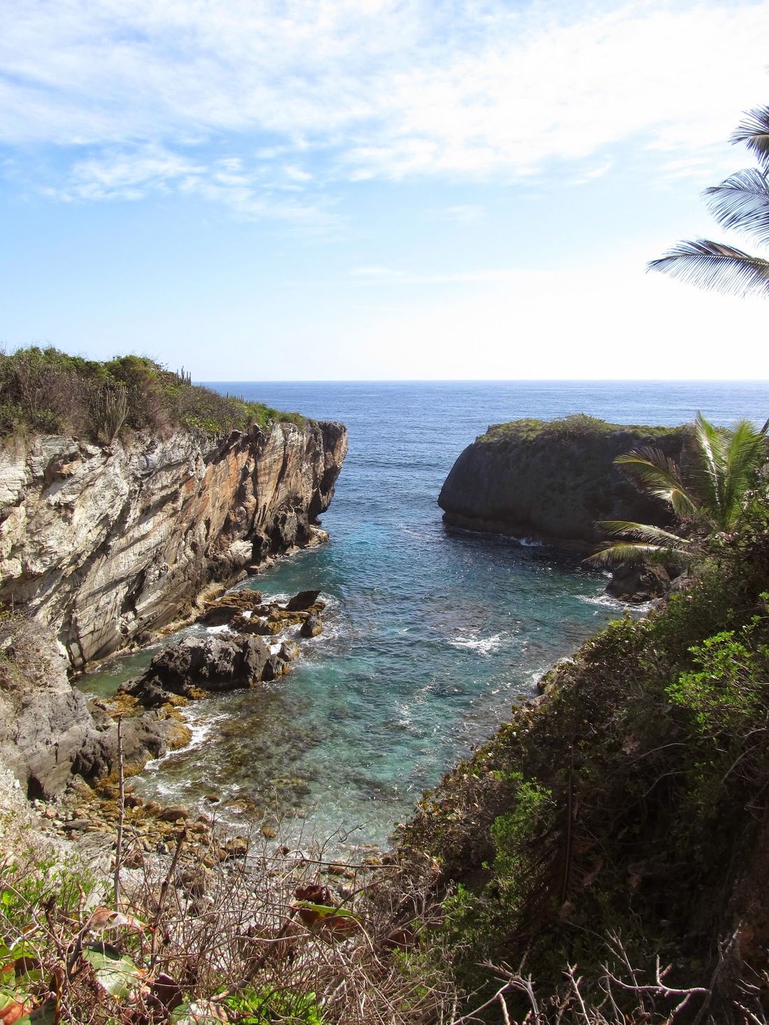 Jedzie z nami drogą w kierunku Las Galeras, jednak tak jak się spodziewałem, nie jest do końca przekonany gdzie ma nas zawieźć. Po drodze pyta jednego Motoconcho o drogę - ten oferuje, że może nas tam zawieźć. No tak, tylko, że będziemy musieli mu zapłacić, a raz już zapłaciliśmy naszemu kierowcy za dowiezienie do celu. Przypominam mu o tym fakcie i ruszamy dalej. Nasz kierowca zjeżdża w boczną drogę po czym pyta jeszcze raz jedną osobę, którędy do Boca del Diablo. Wygląda na to, że jesteśmy na dobrej drodze. Zawozi nas nad przepiękną, wąsko wciętą w klif skalny zatoczkę.
