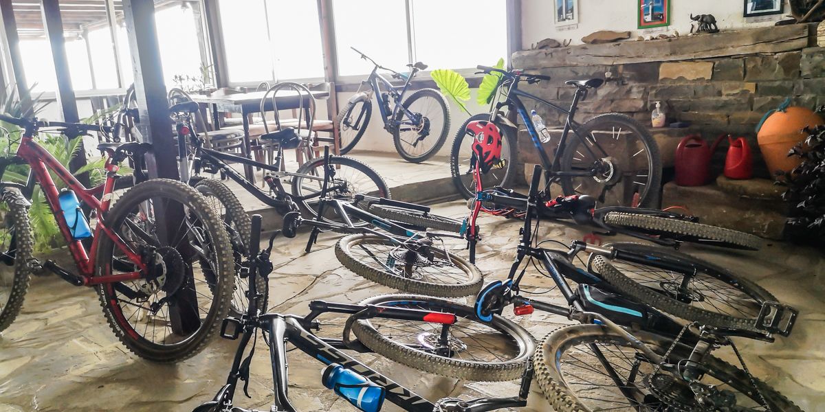 Almost immediately after the bridge, we turned right and crossed a large field. We then entered the forest where it was a big hill and there were many fallen trees along the way. Cycling was difficult and most of the time we had to push the bikes.