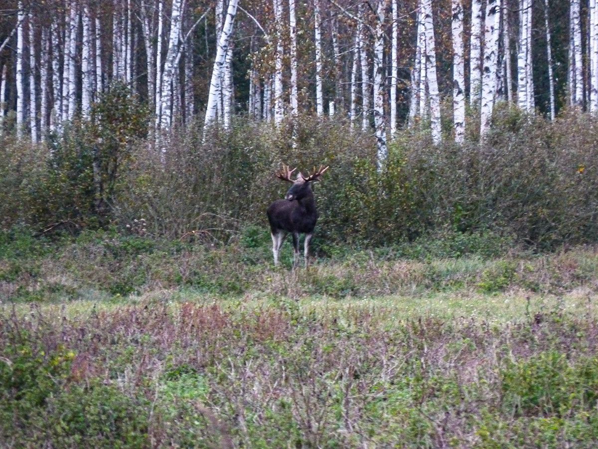 Fotka zrobiona trzęsącymi rękami i ze sporej odległości, dlatego trochę zamazana... ale przez lornetkę miałam łosia na wyciągnięcie dłoni. W ostatniej chwili chwyciłam za aparat i jest :)