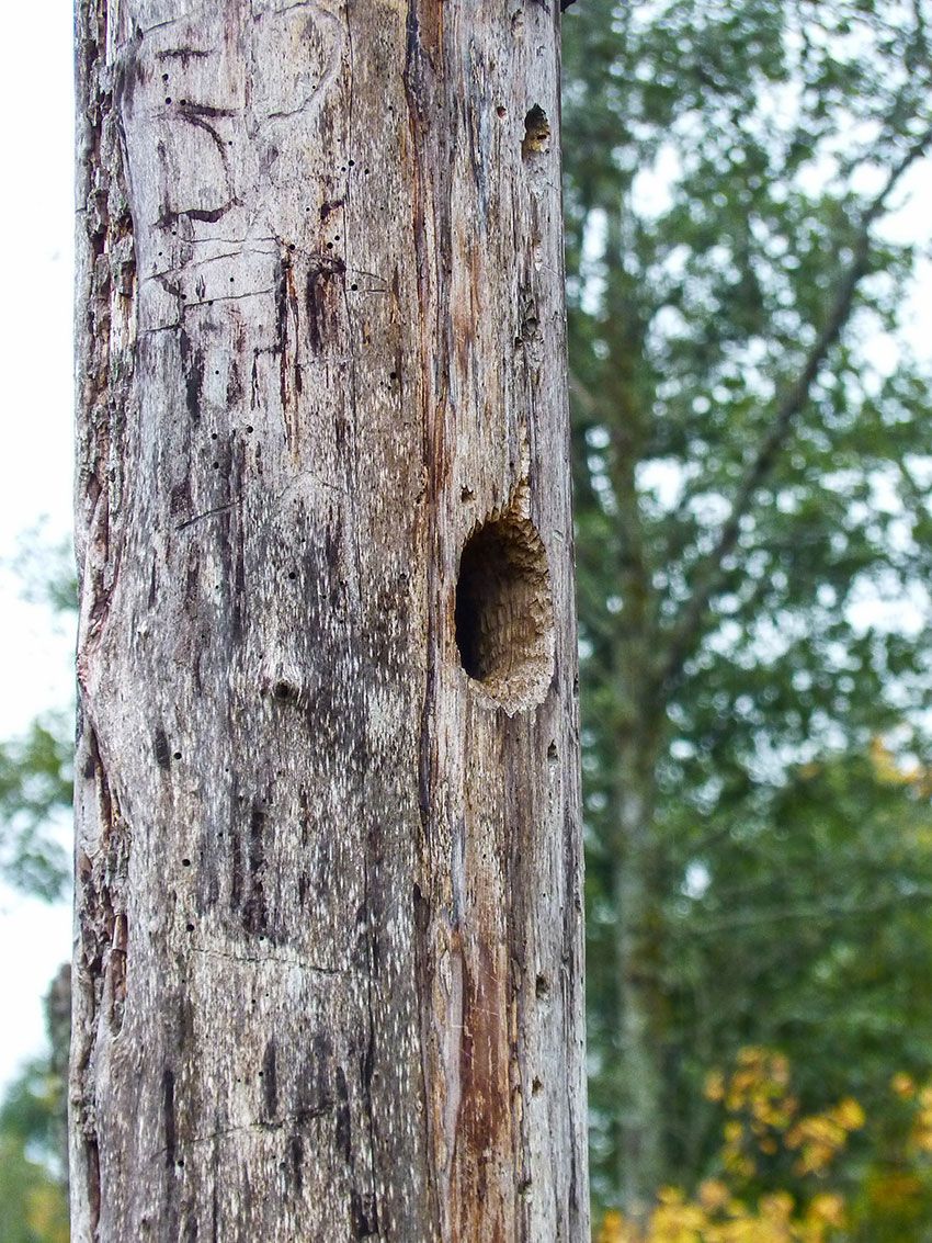 Ostatnim miejscem był na wpół martwy fragment lasu, według przewodnika podtopiony na skutek działania bobrów. Uschnięte kikuty sterczały wśród roślinności wodnej, stanowiąc idealną stołówkę dla dzięciołów.