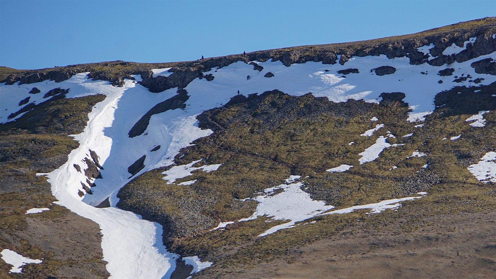Kiedy później spacerowałam doliną, zrobiłam z dystansu kilka zdjęć tego podejścia. W domu zauważyłam na nich drobne postacie wdrapujące się po śniegu na szczyt. Zabrakło może piętnastu metrów - trochę mi było żal.