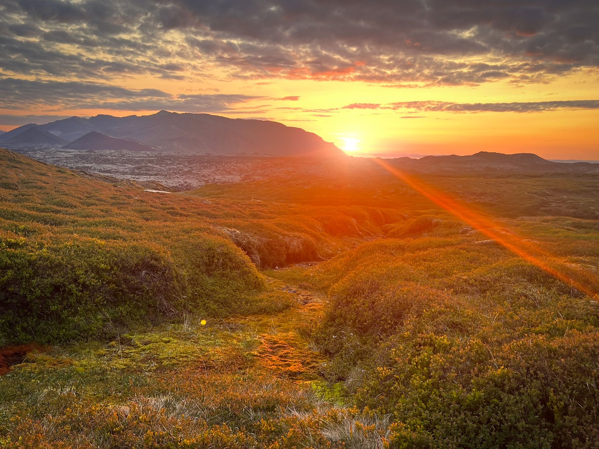 Światło się zmieniło, po drodze na nowo cieszyłam się widokiem roślinnego drobiazgu, kraterów, pola B i jeziora Selvallavatn. Do samochodu dotarłam o zachodzie słońca - znowu na czas.
