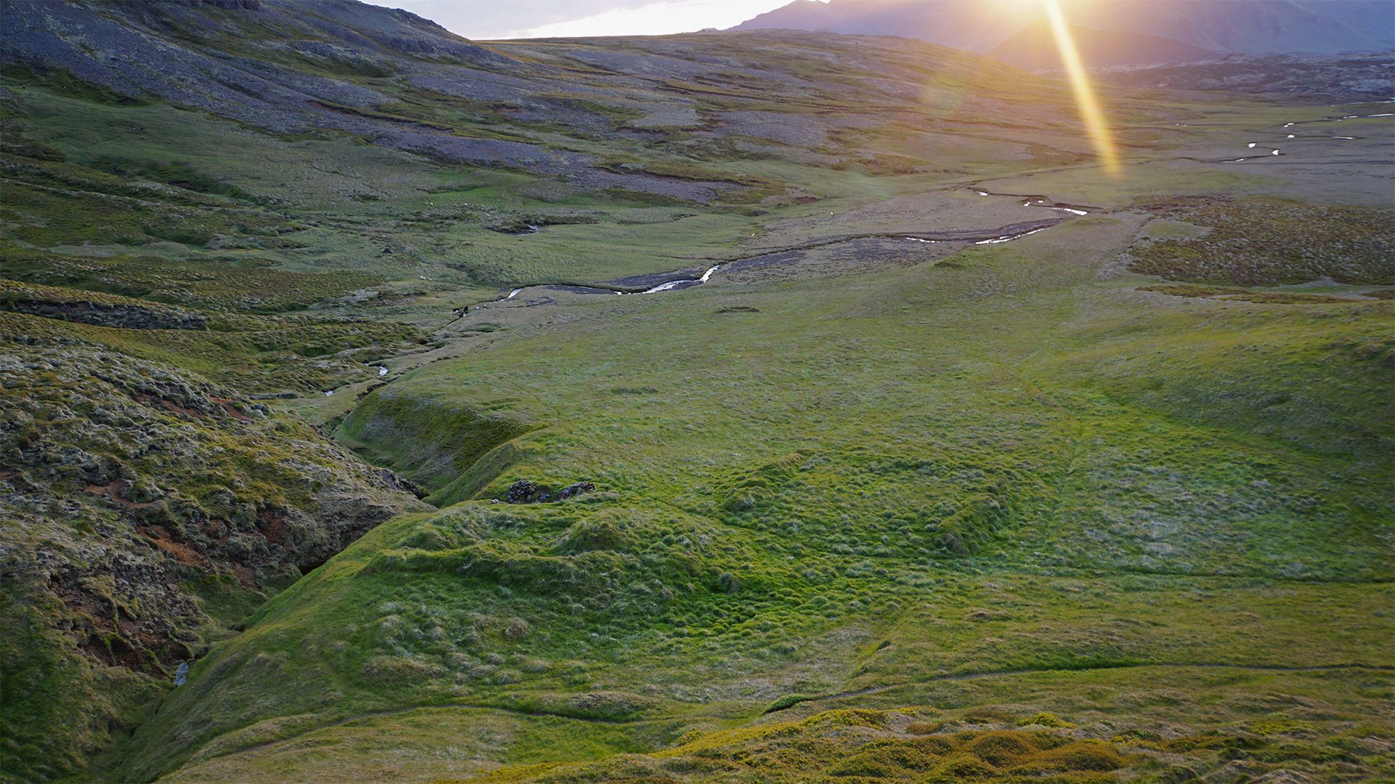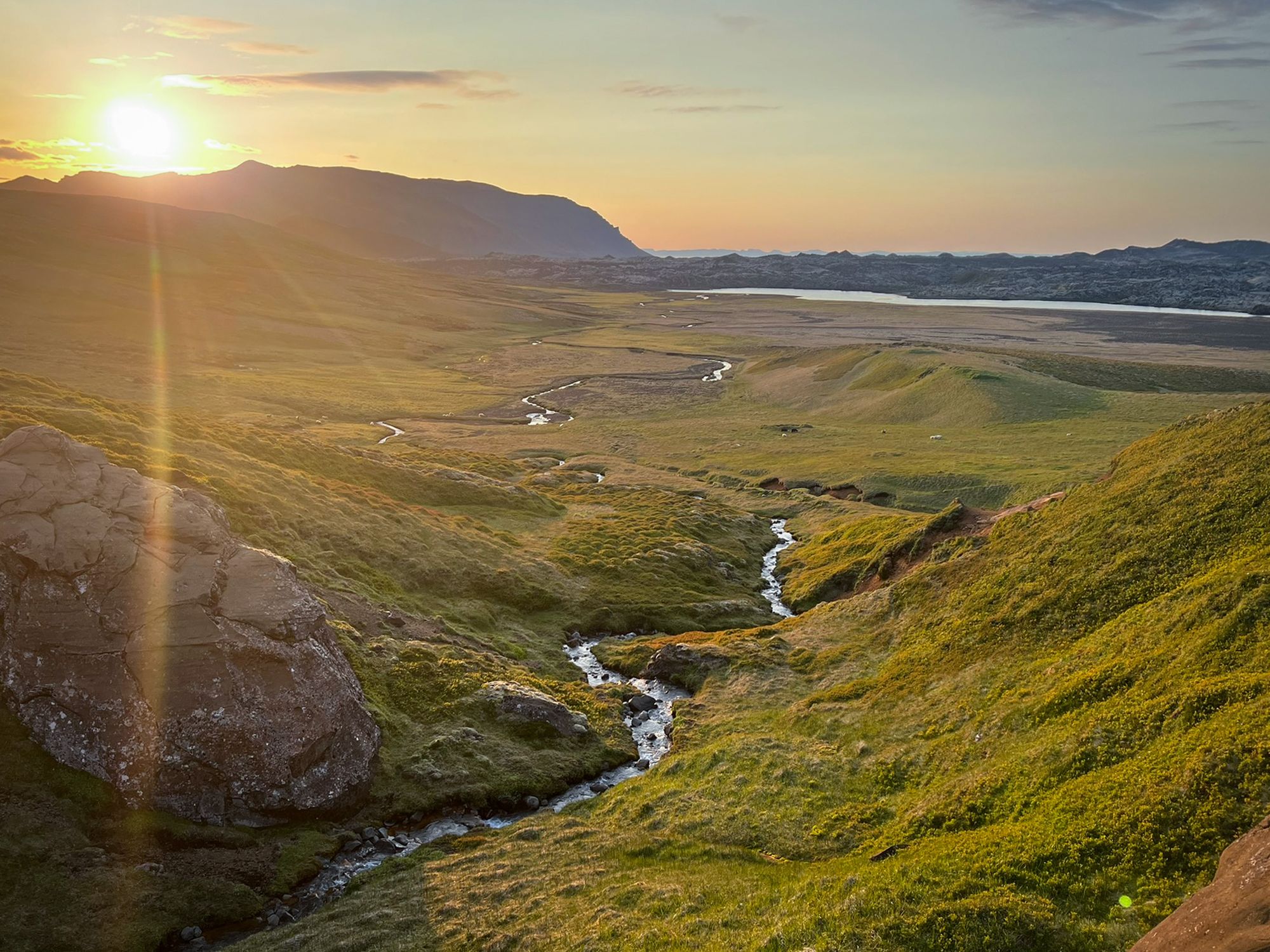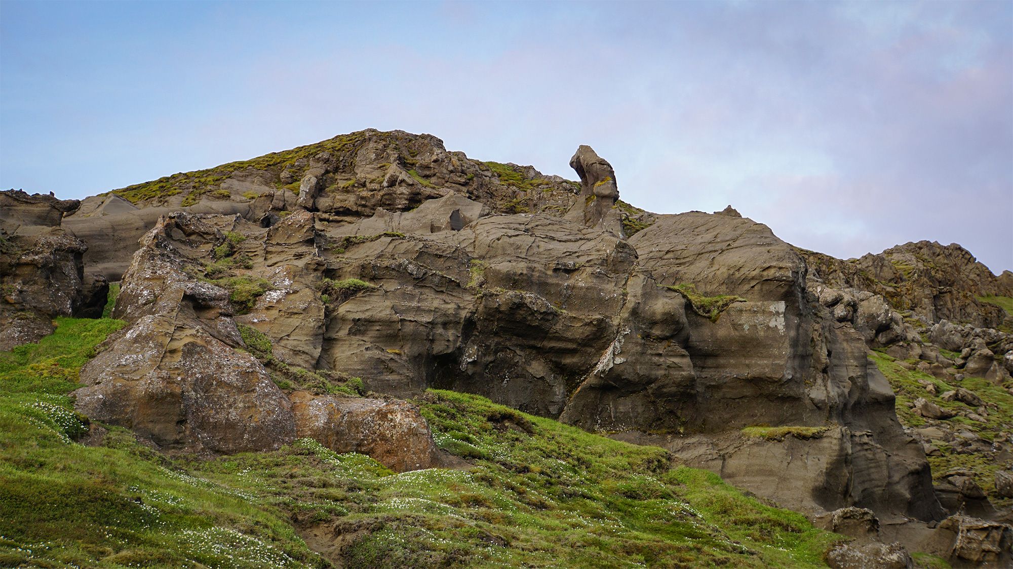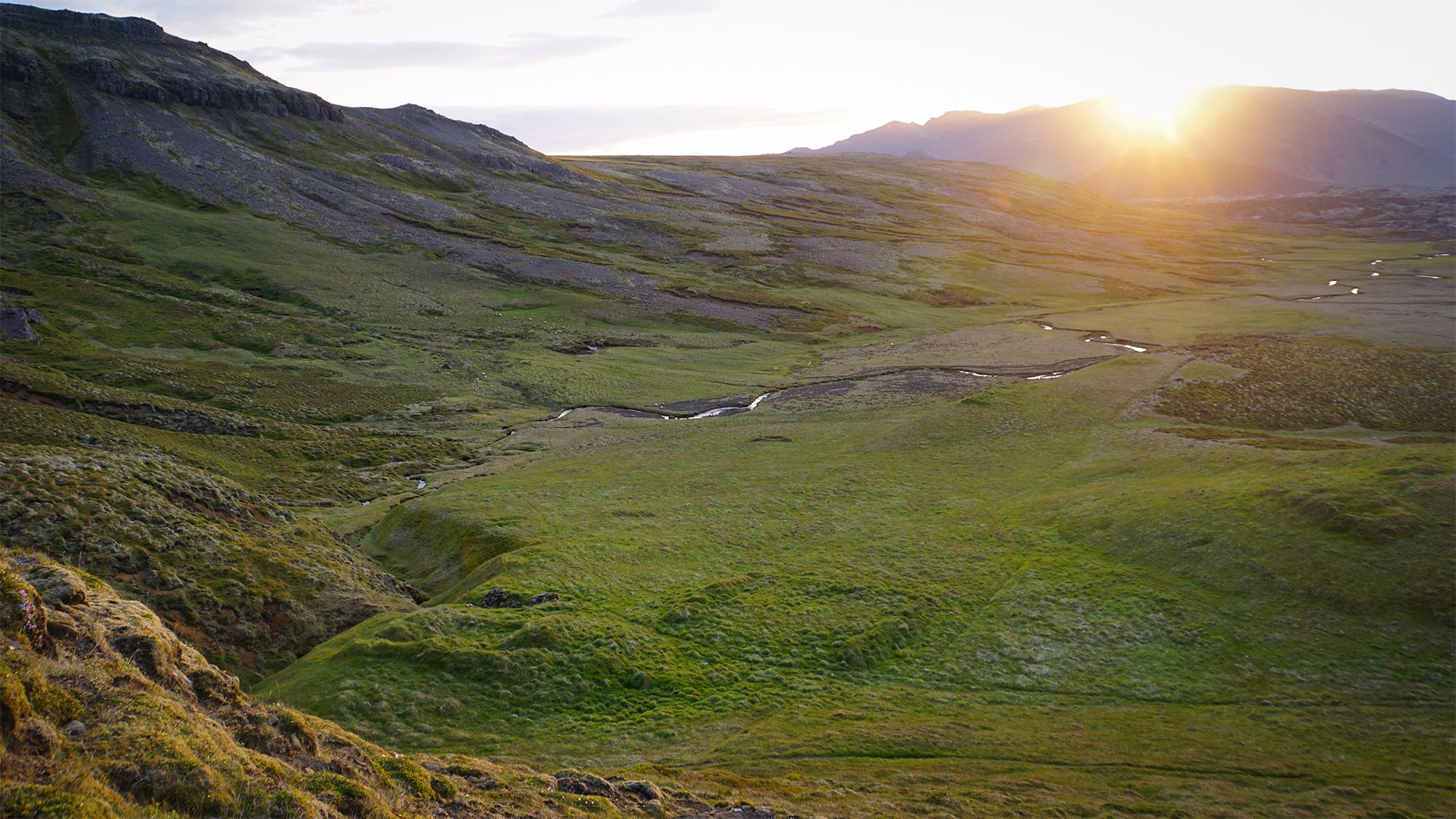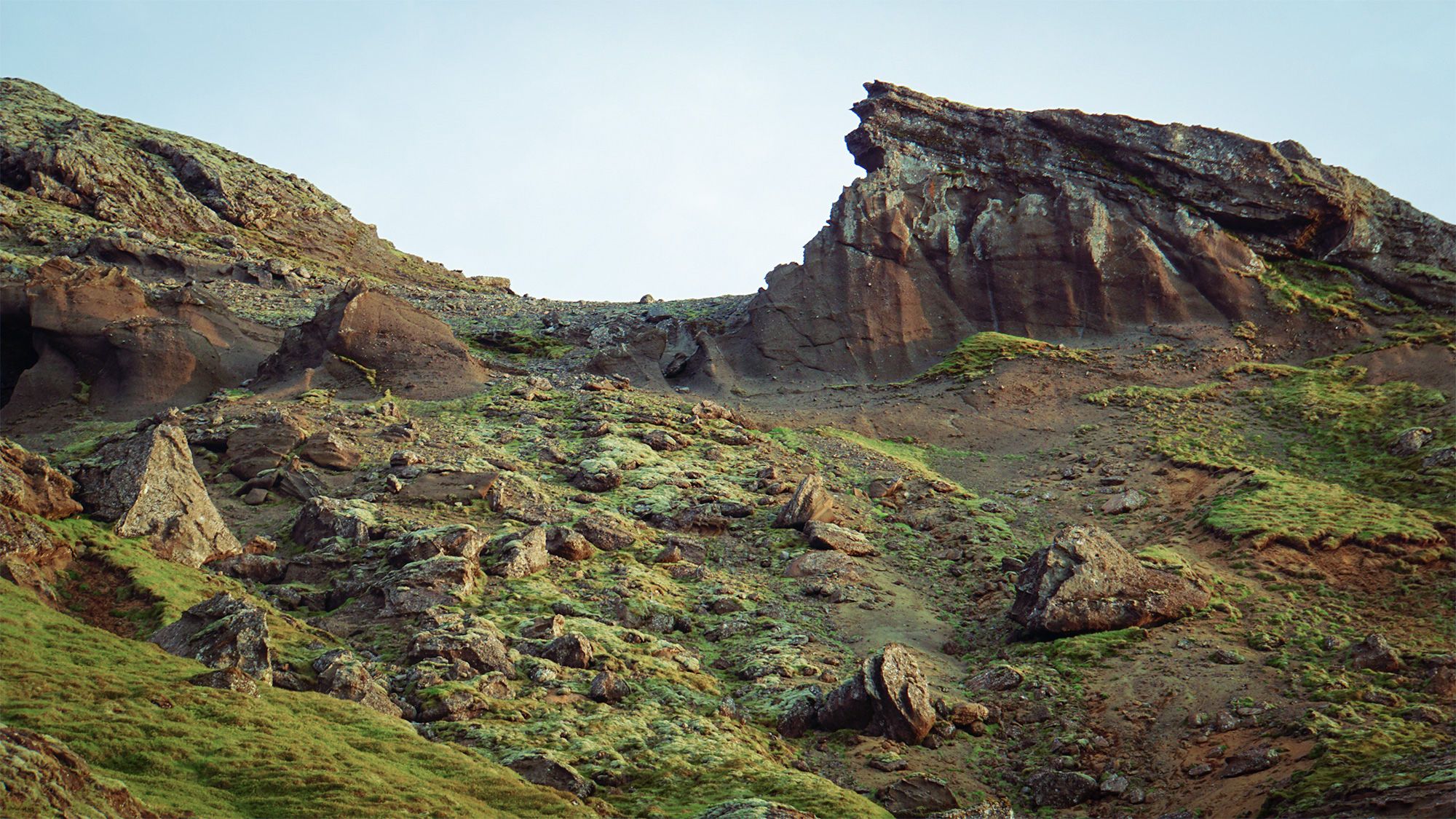 Idąc wzdłuż potoku spływającego spod szczytu przekroczyłam coś, co wyglądało jak skalna brama. Obok nurtu biegła wąska ścieżka. Uznałam, że - jak to często tutaj bywa - wydeptały ją owce. Wiedziałam jednak, że zaglądają tu również nieliczni, dwunożni wędrowcy - głównie Islandczycy.