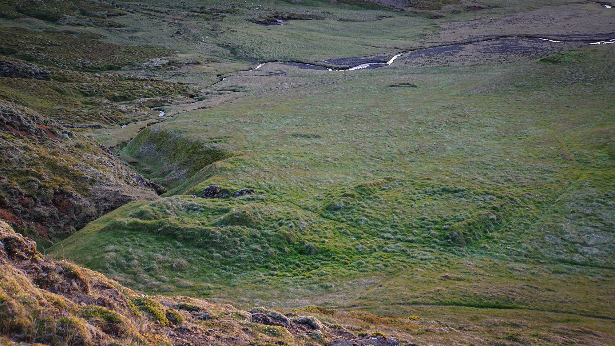Cała okolica usiana była śladami po rozległej farmie, pilnującej niegdyś wejścia do wąwozu prowadzącego na Horna. Naliczyłam kilkanaście konturów o różnych rozmiarach. Największe z nich usadowione były dokładnie w miejscu, w którym wyszłam z dolinki.