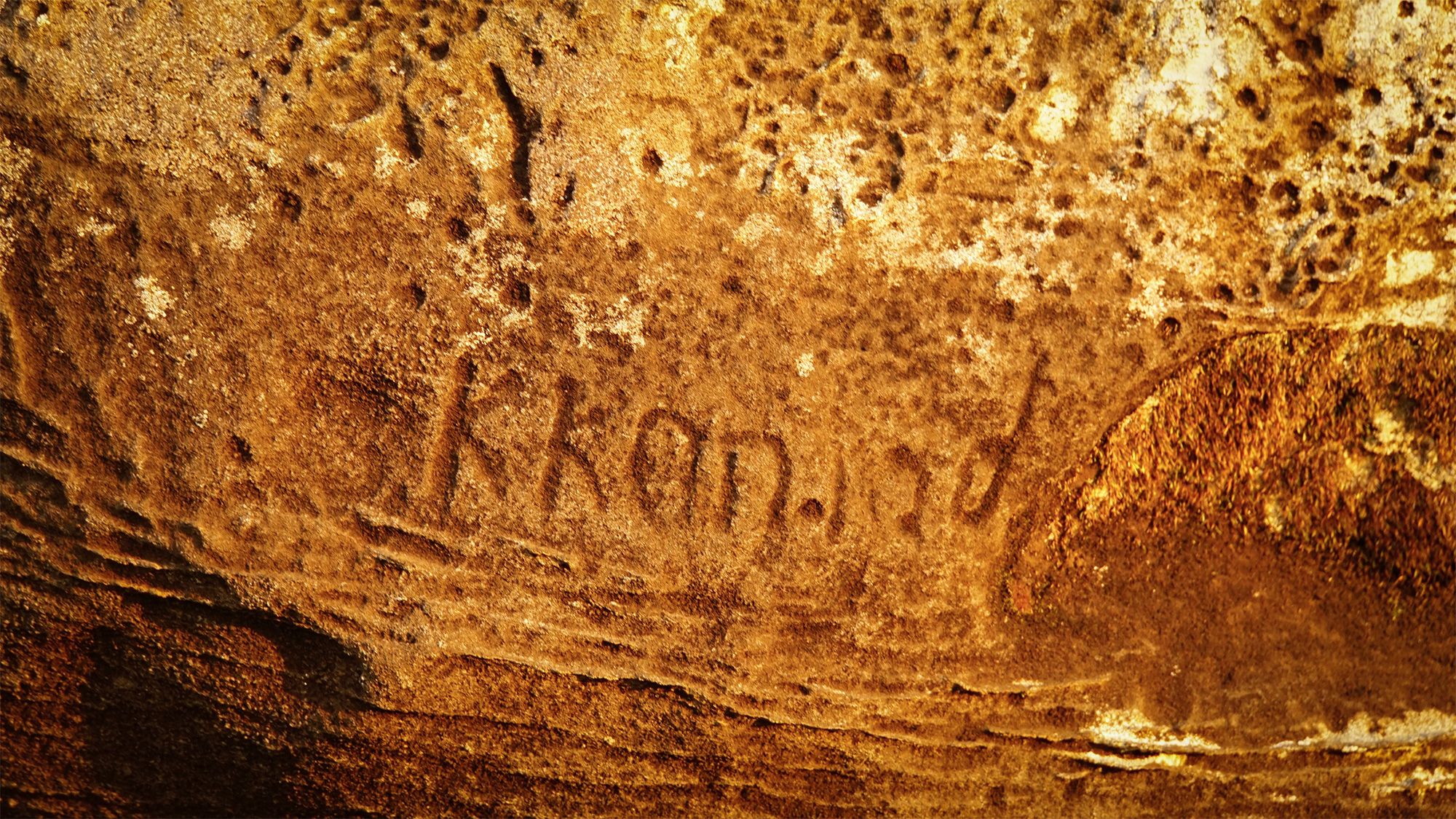 Szukając dogodnego wyjścia z dolinki natknęłam się na skałę z wyrytym w niej, lekko zatartym napisem. Zarejestrowałam jako ciekawostkę, bez dalszych refleksji.