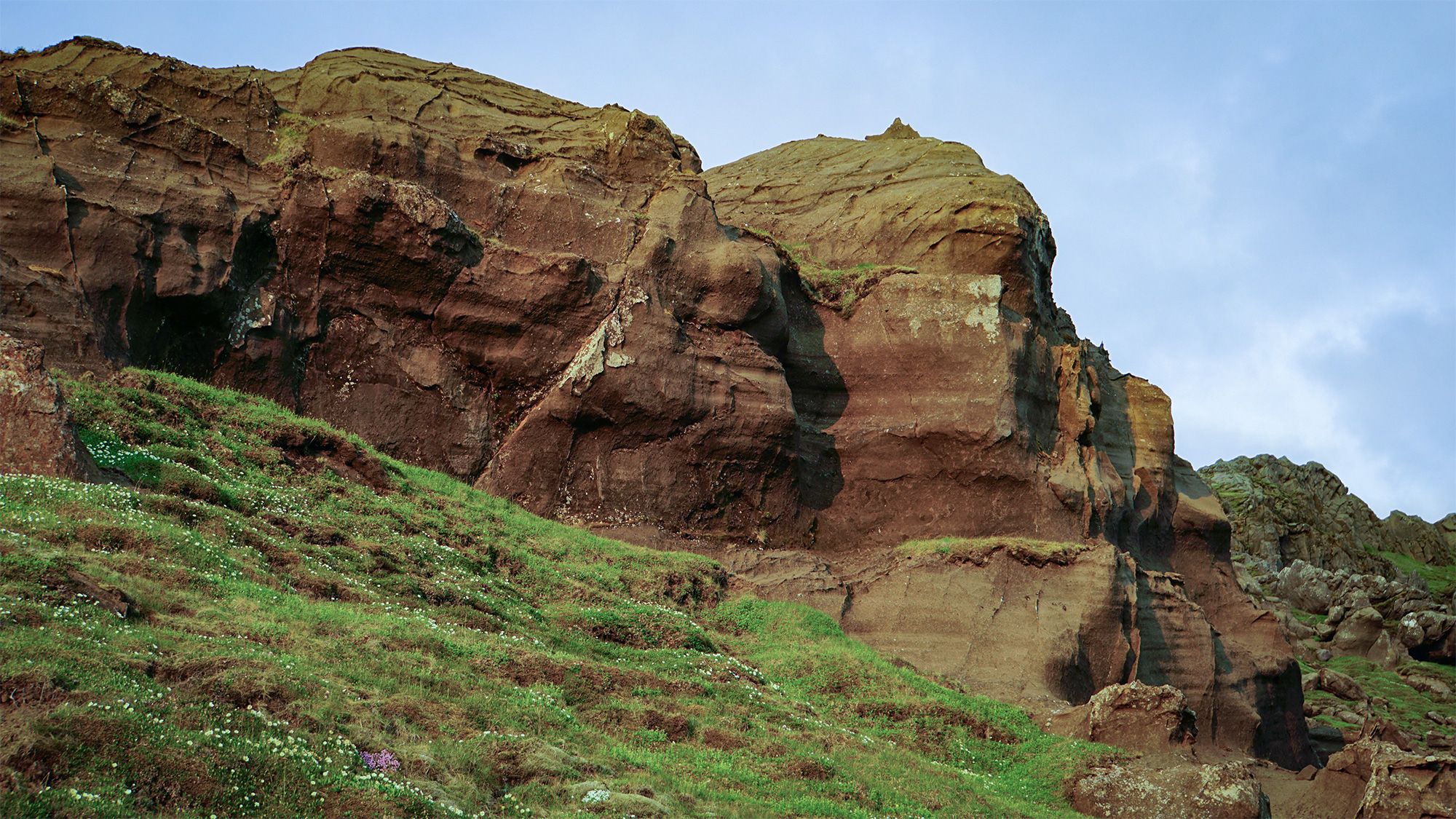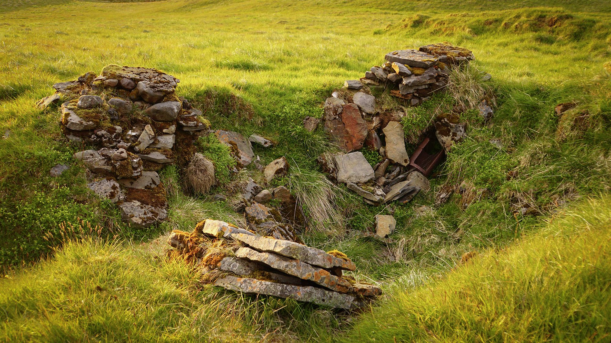 Potem wdrapałam się po trawiastym zboczu wychodząc wprost na niewielkie, kamienne ruiny.