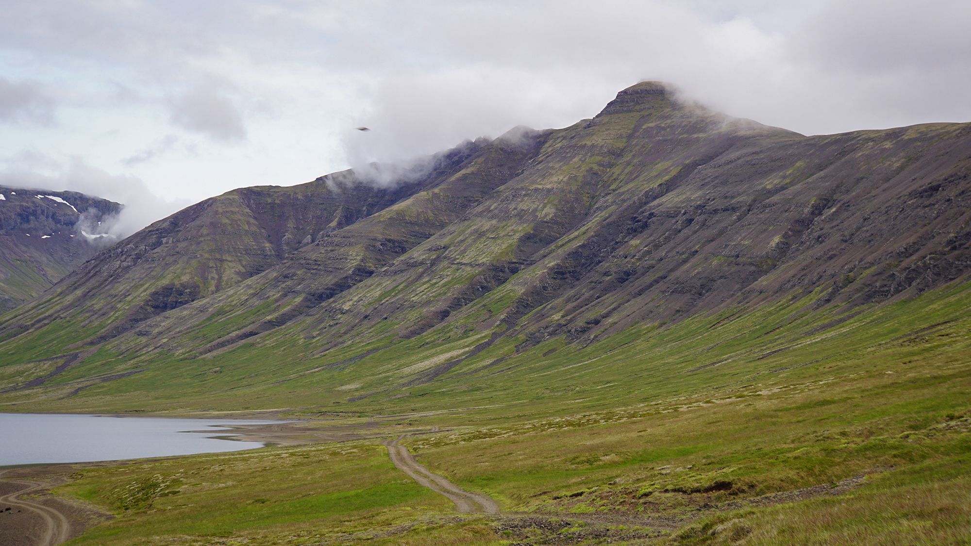 W drodze powrotnej spontanicznie zatrzymałam się na krawędzi Berserkjahraun i poszłam na spacer w głąb jednego z maleńkich fiordów. Okolony jest górami, które od jakiegoś czasu mam na celowniku.