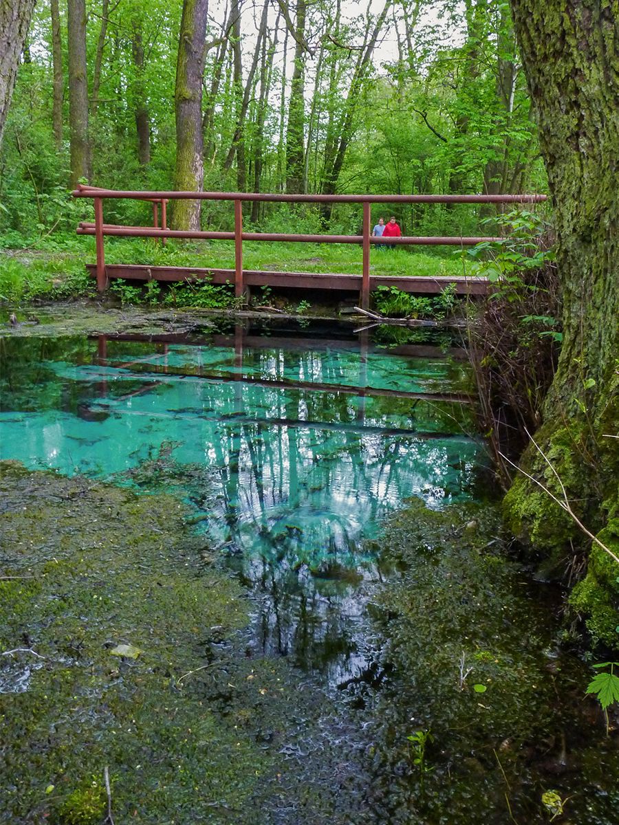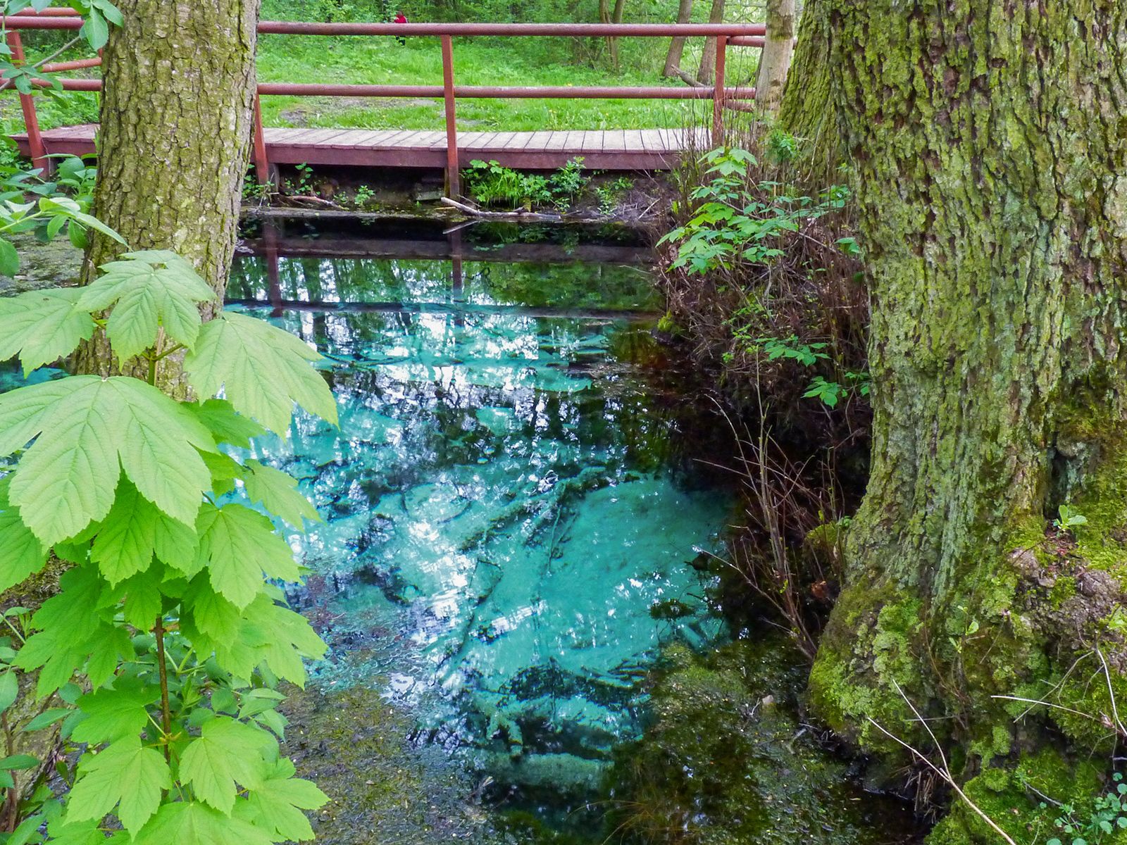Zbiornik jest dużo większy od poprzedniego, to raczej mały staw. Jego kolor nie jest aż tak turkusowy, ale woda równie przejrzysta. Dzięki temu pięknie prezentuje się dno, upstrzone kolistymi wzorami w miejscach, z których niegdyś wypływała (lub wciąż wypływa) woda.
