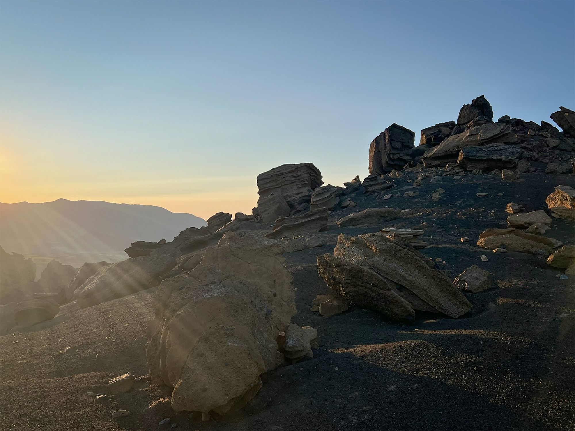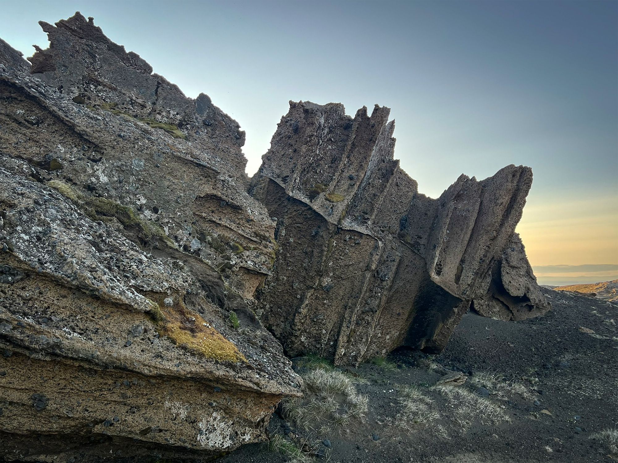 Wspięłam się wyżej. Tam, pomiędzy piaskowe skały, poczęły się wkradać pojedyncze elementy kolejnej scenografii - duże kawałki szarej lawy i niewielkie, czarne kamienie wyglądające jak obsydian.