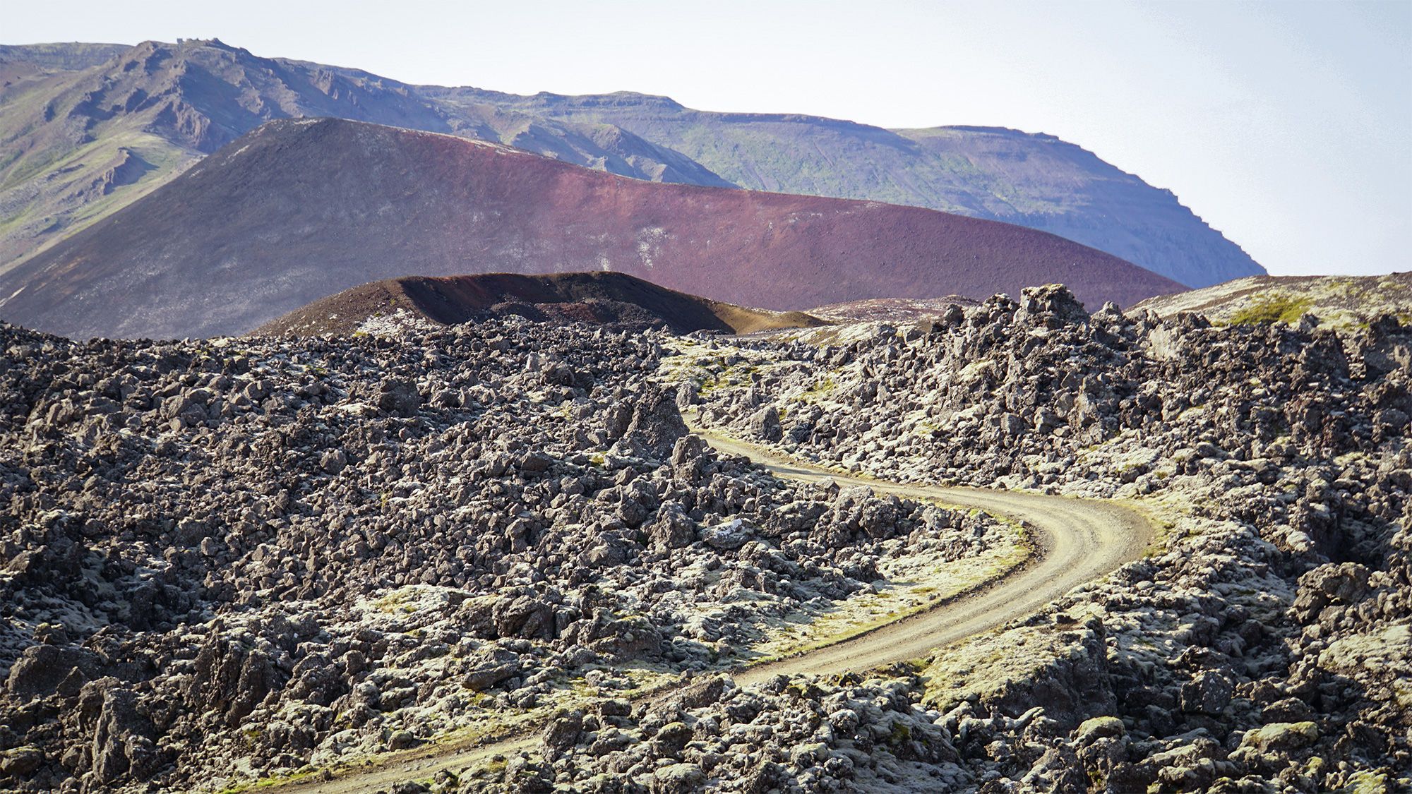 Droga przecinająca pole lawy jest w przyzwoitym stanie - czasem kamienista, czasem pokryta czerwonym pyłem - i wiedzie w sam środek skalnego rumowiska, gdzie rozdziela się na dwie nitki, które wracają do głównej szosy parę kilometrów dalej. Nie jest to duży obszar i można go spokojnie przejść na nogach w każdą możliwą stronę. Mimo to i tak czułam się jak odkrywca - niewielu turystów tutaj zagląda.