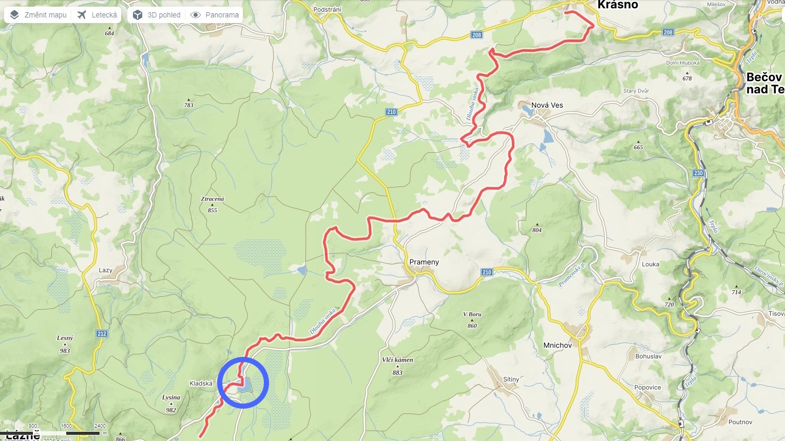- We bypassed Dolní Bahňák and again joined the Nature Trail, which now continues around Kladský Pond.