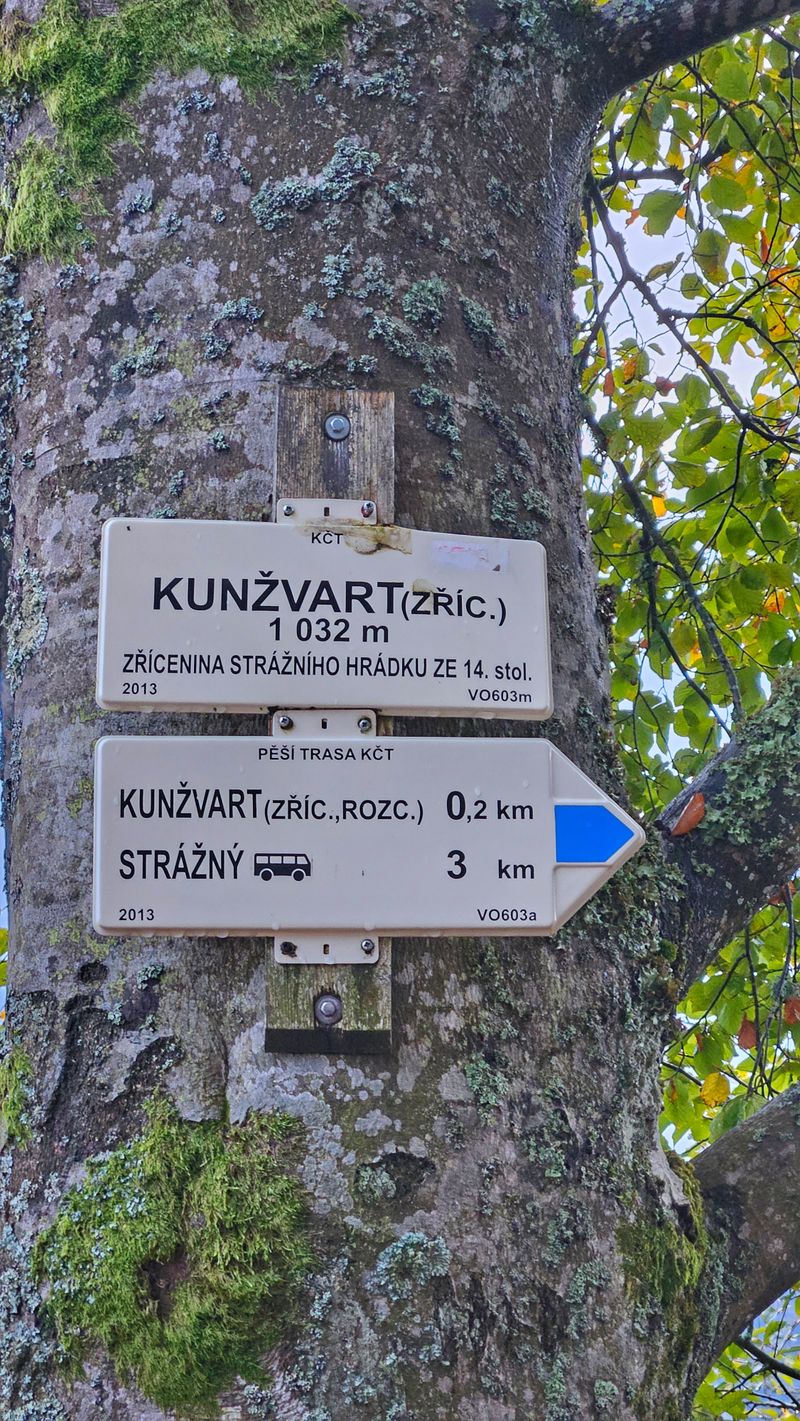 - I went to the ruins of Kunžvart Castle as part of a circular run.I started from the place where we were staying from Dvora Lískový vrch.The path first led along a local road to the outskirts of the small town of Strážný.