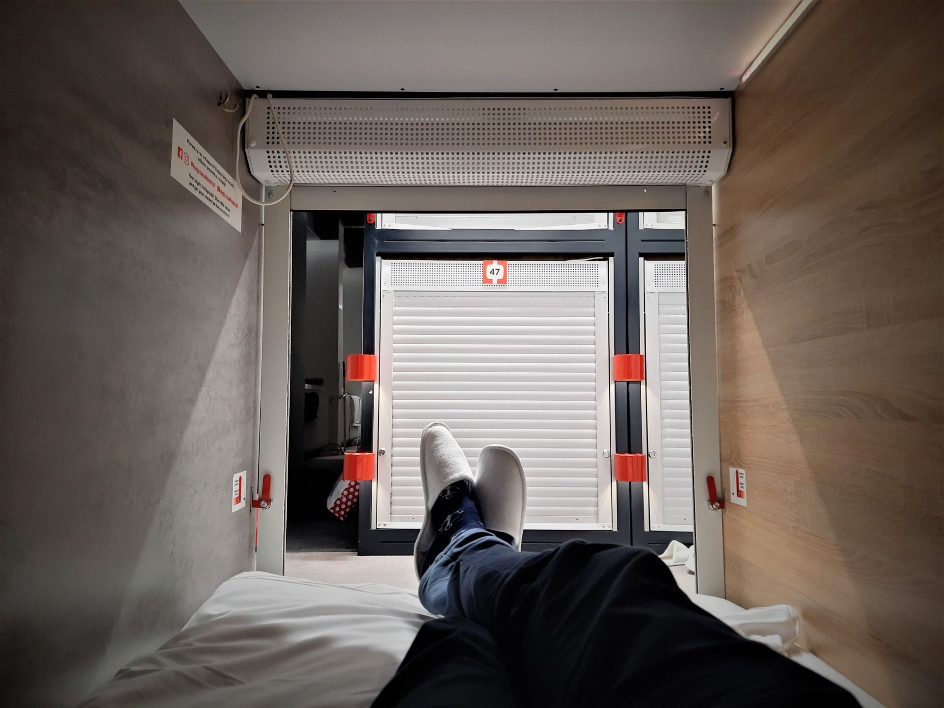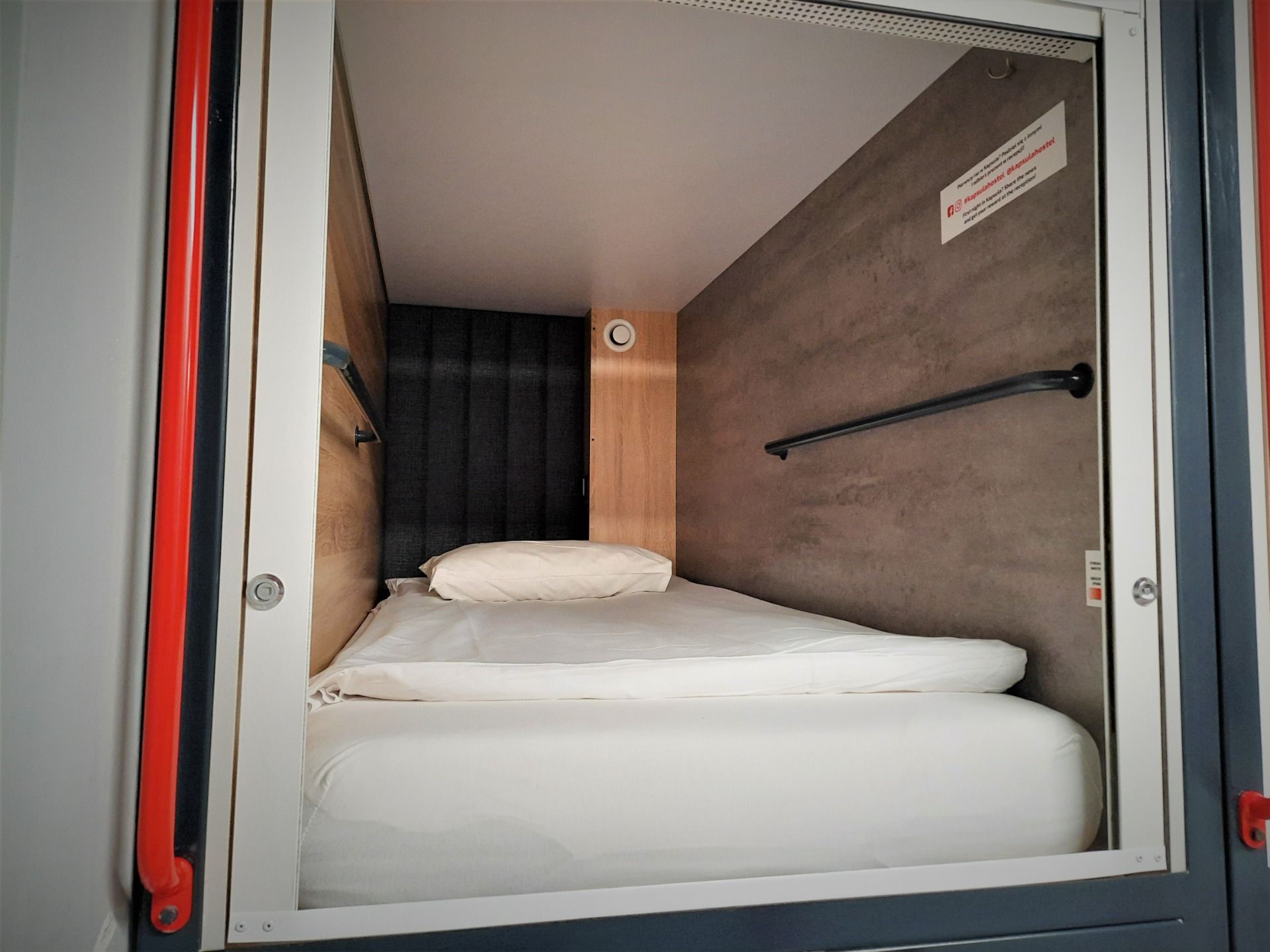 W samej kapsule znajdziemy materac, pościel, wentylację, dwa kontakty, oświetlenie, wieszak i awaryjne otwieranie drzwi.