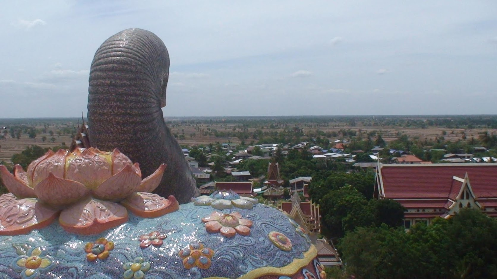 The elephant temple is an imposing newer structure, many students and tour groups arrive here every day. Admission is free, but you have to join a guided tour, there may be waiting times depending on the day and the number of people. In the meantime you can also visit the small museum, in which the story of the monk Luang Phor Koon is presented. The temple is surrounded by a landscaped lake and is reached via a bridge. In front of the entrance of the whole temple area, which is cordoned off and guarded, there is the large parking lot with plenty of souvenir and refreshment stands as well as snacks.
