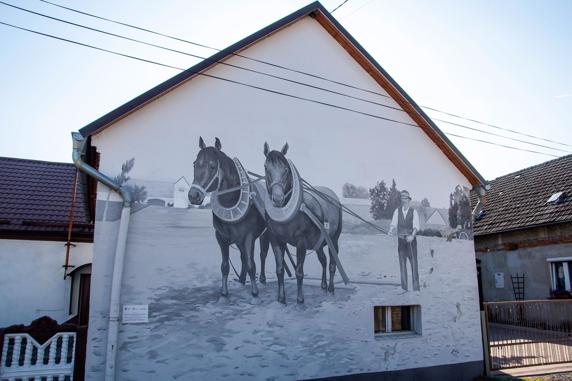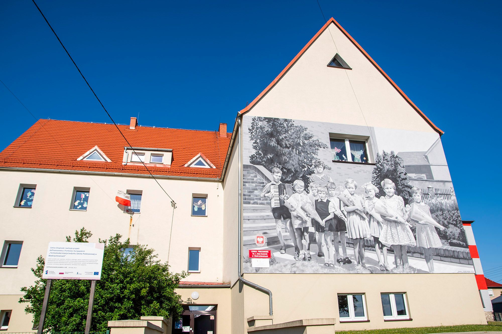 There are also many castles and palaces in the area. I also managed to visit Biedrzychowice. It is a small village, which is probably not well known, but it is interesting because old photographs are painted on the walls of buildings in the form of murals. I don't have photos of all of them here either, but maybe I will encourage someone to find the rest.