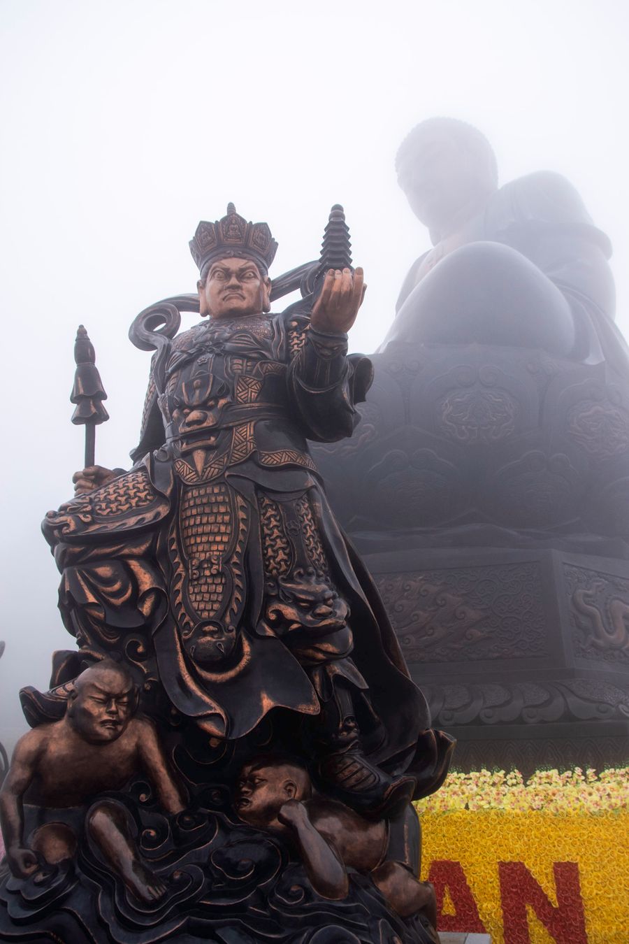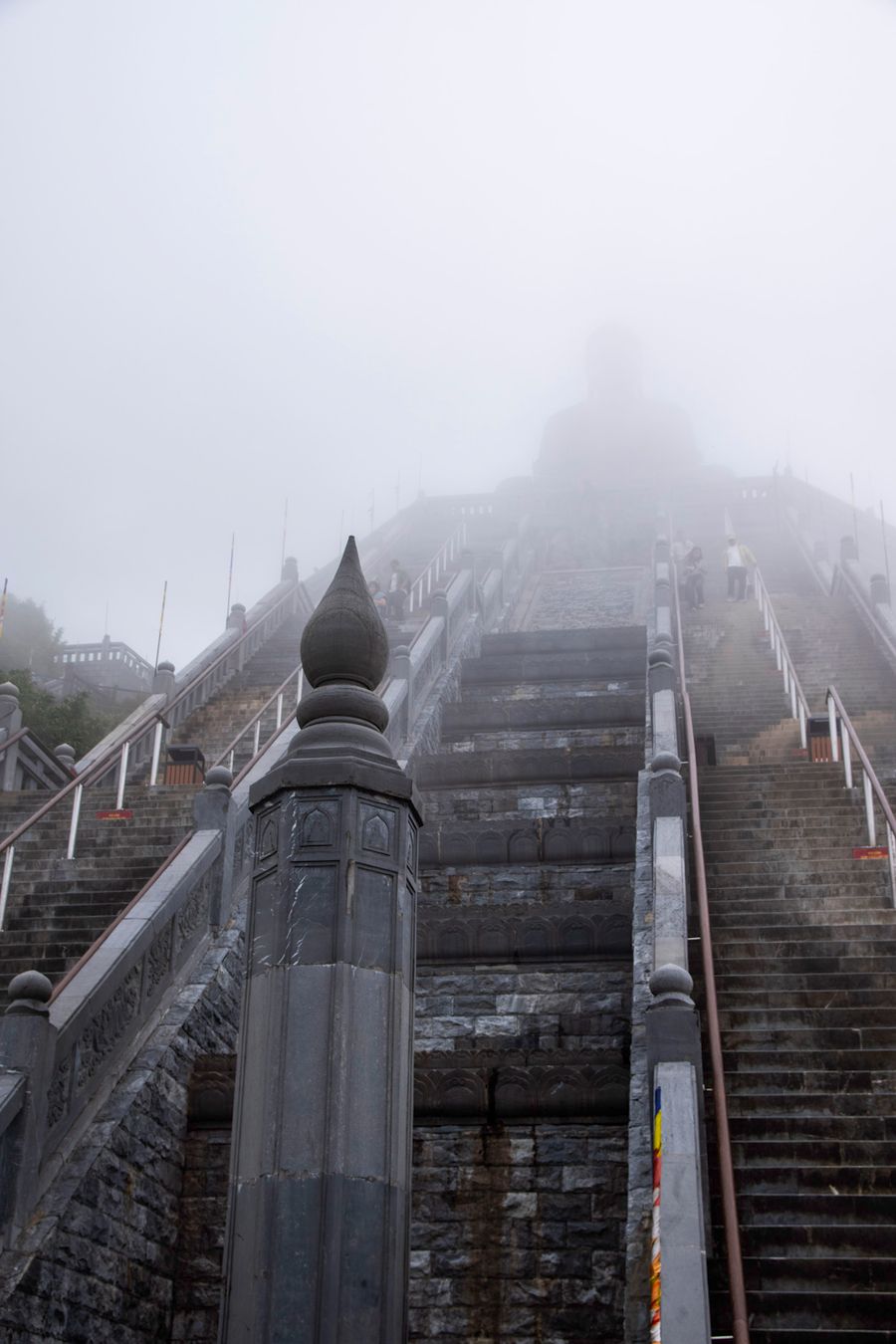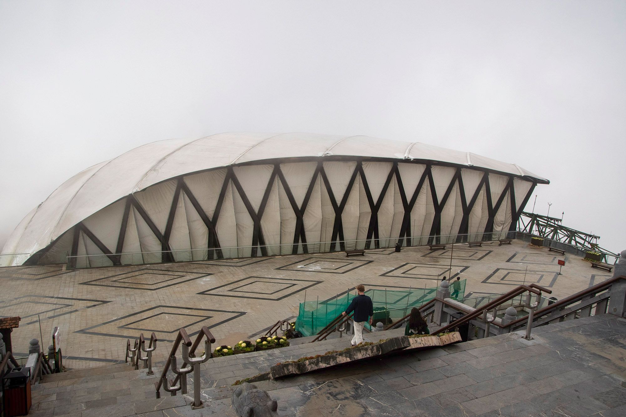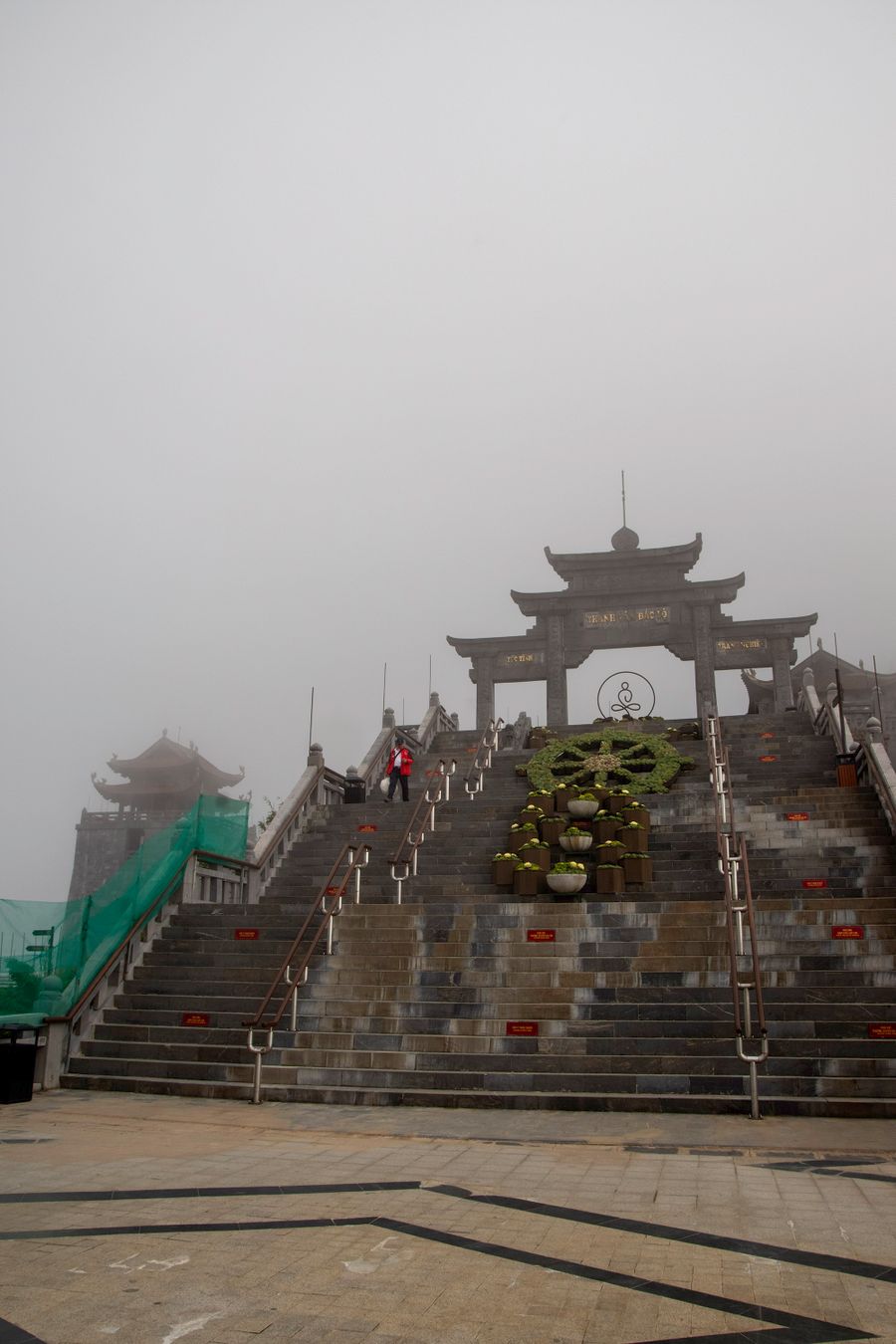 If you look closely at the photo above, you will see several buildings at the top. The one on the right (a small square) is the cable car building. It is not that small. Then, to get to the very top, you have to climb about 600 steps or... take another cable car, this time a cog railway. On the way, you can see a tower building, a huge statue of Buddha, and at the very top there is a fairly large mast. Apparently, if you stand by the church in Sapa and can see these buildings, it means that the weather at the top will be good. Unfortunately, we weren't that lucky...