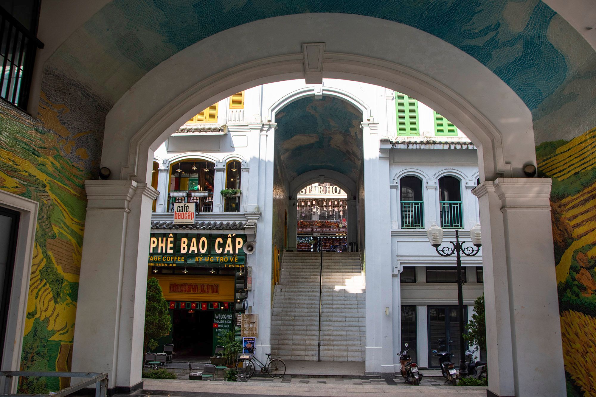 Natomiast najpiękniejszą mozaikę widziałam w Sapie. Czego kompletnie się nie spodziewałam i wypatrzyłam ją z busika, którym wracaliśmy z trekkingu. Mozaika przedstawia pola ryżowe i została wykonana w pasażu, nie tylko na ścianach, ale również na suficie.