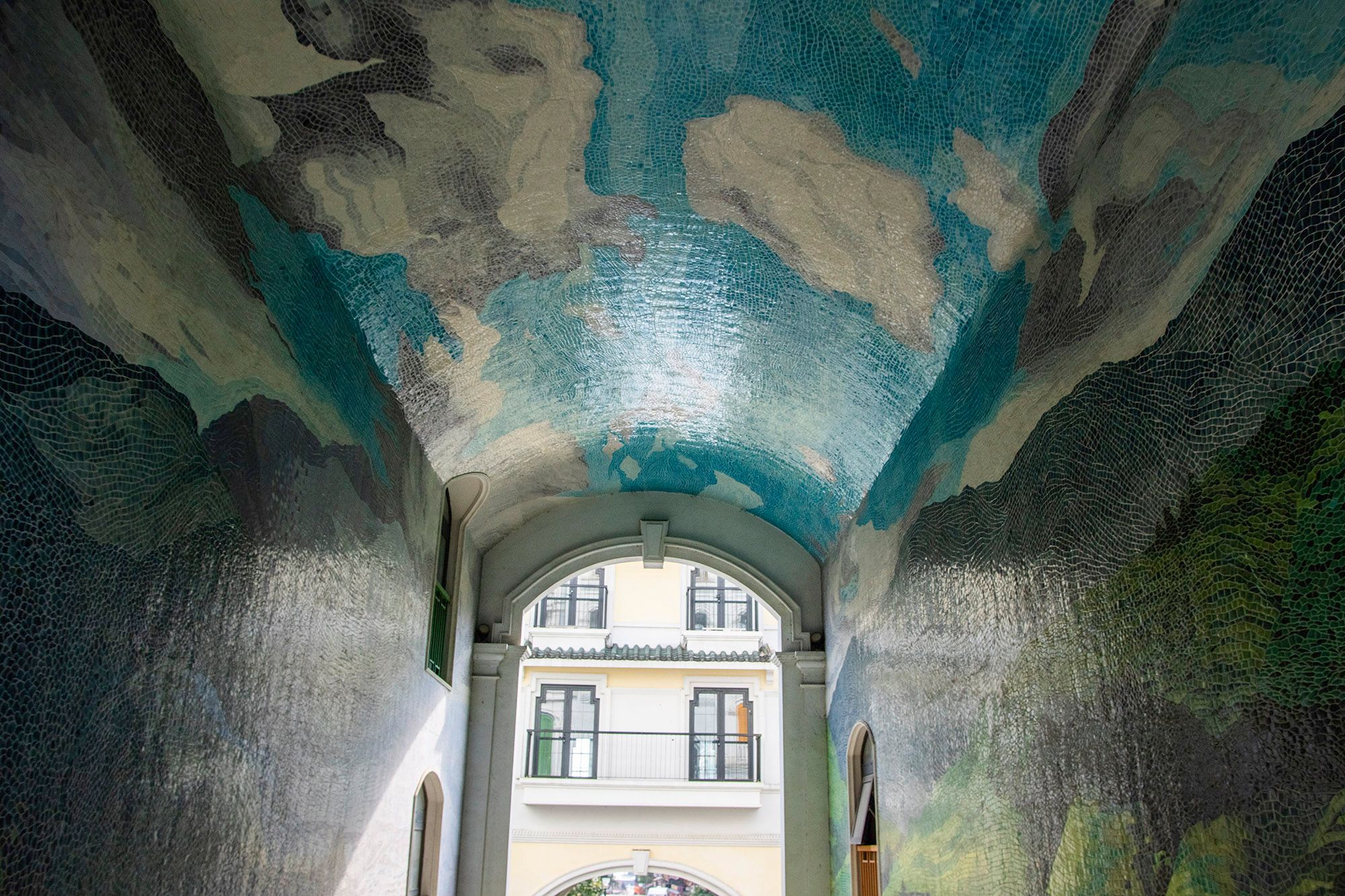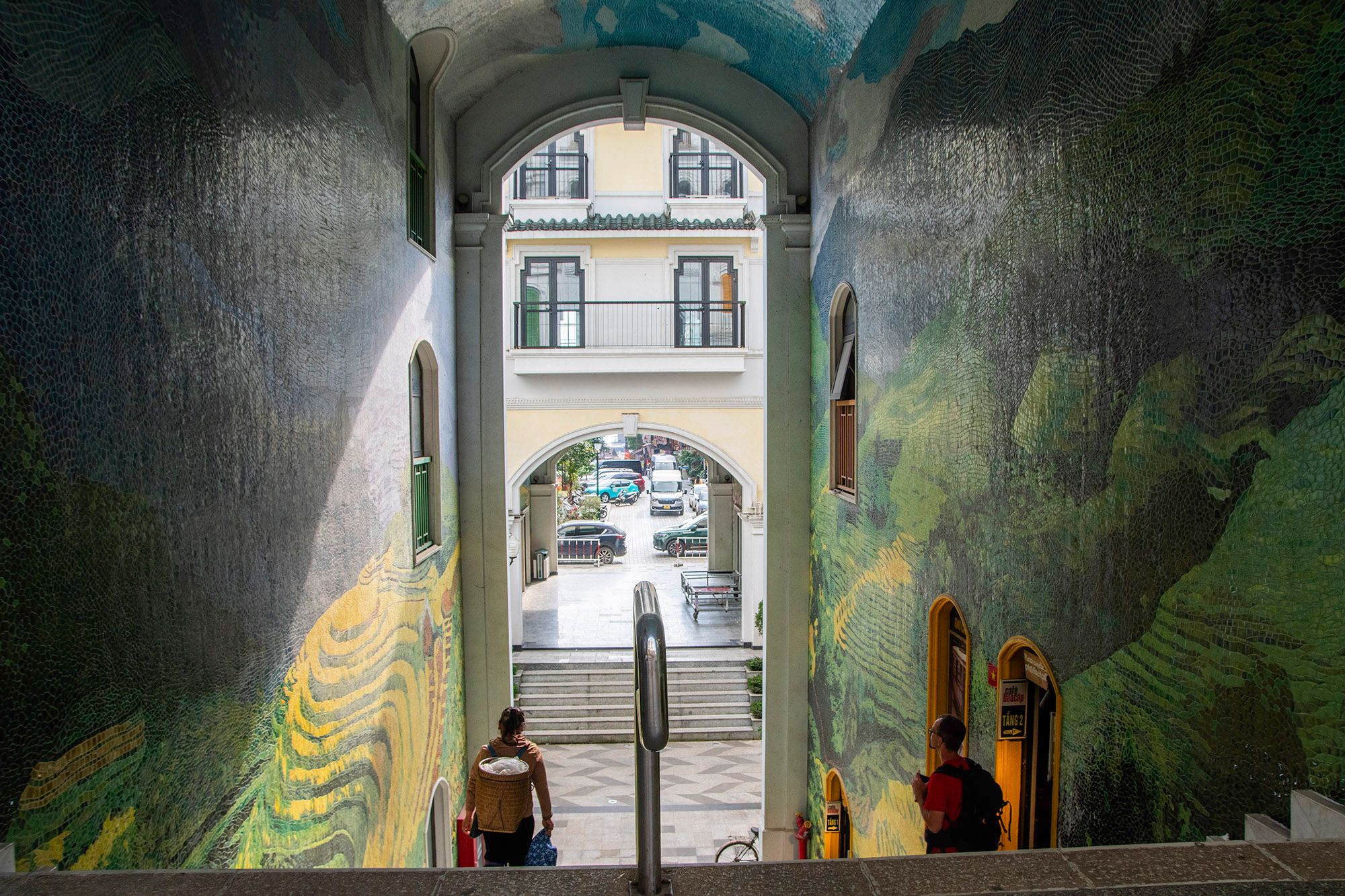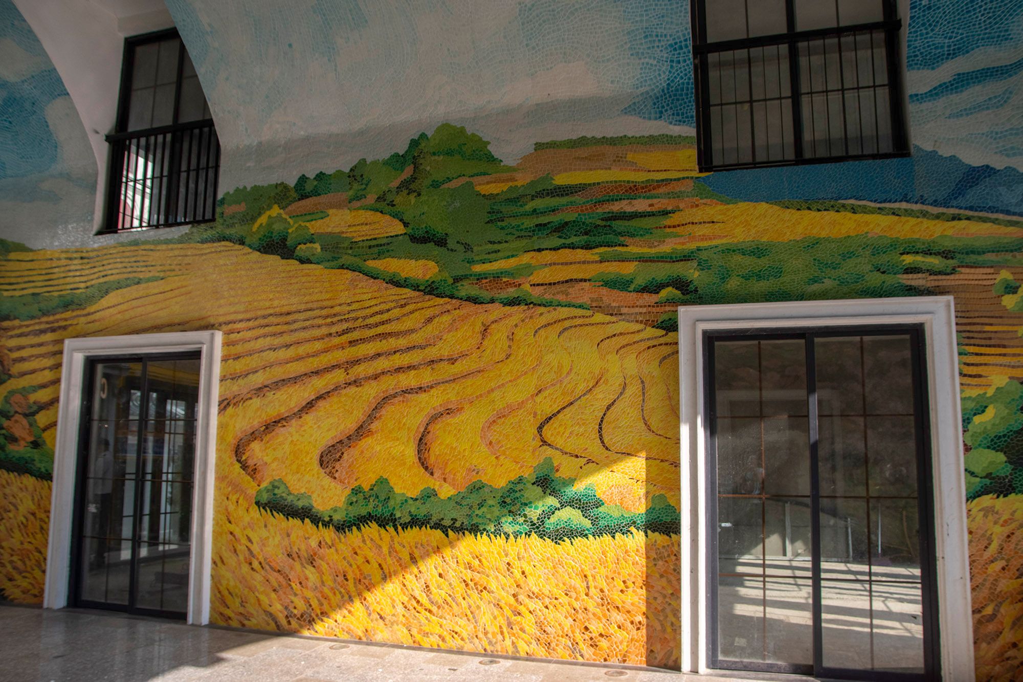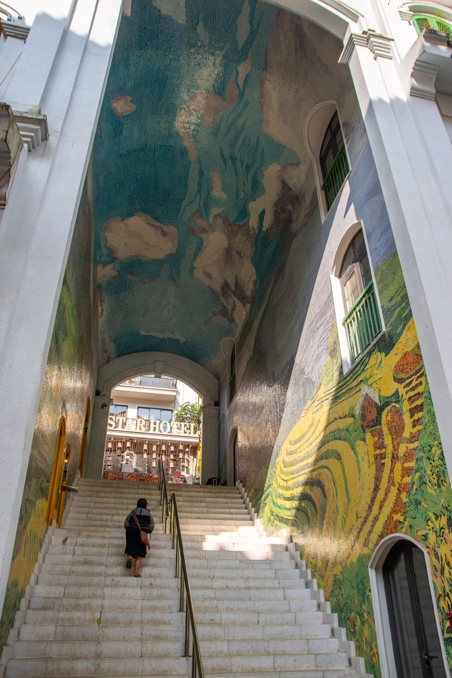 However, I saw what was probably the most beautiful mosaic in Sapa. I didn't expect it at all and spotted it from the bus we were taking back from trekking. The mosaic depicts rice fields and was made in a passageway, not only on the walls but also on the ceiling.