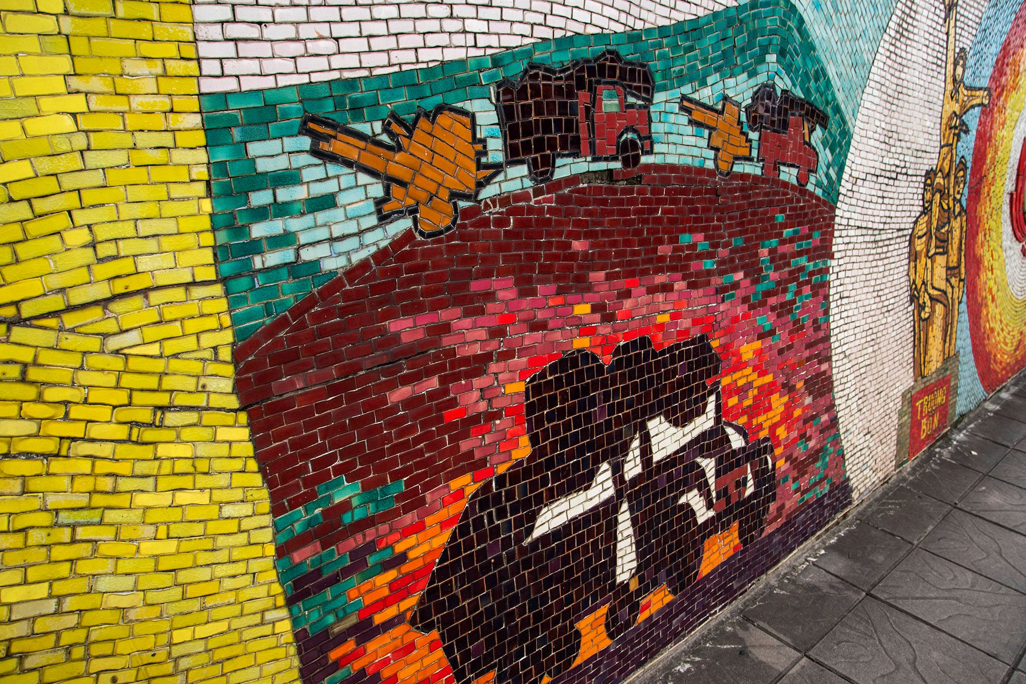 We didn't manage to walk through and see the whole thing because it was very uncomfortable walking in the heat and smog right next to passing cars. Still, the mosaic is impressive, so it's worth seeing.