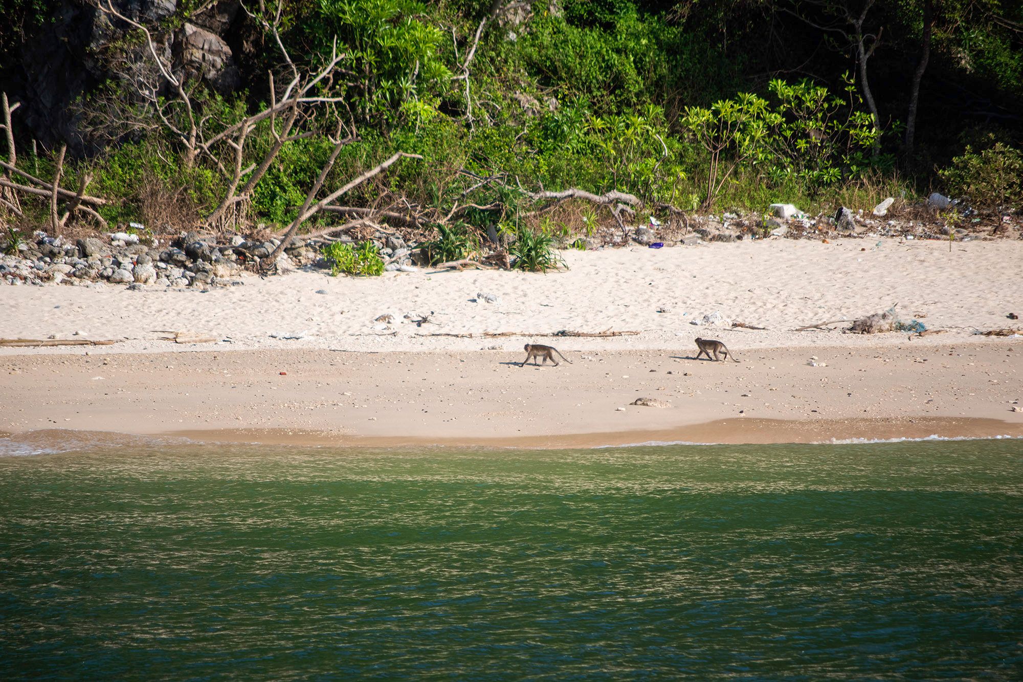Następnie wróciliśmy na statek i popłynęliśmy na Wyspę Małp. Moim zdaniem była to najsłabsza "atrakcja". Żeby dostać się na wyspę trzeba było samemu tam popłynąć, większość ludzi była po całym dniu spędzonym w upale i pewnie po kilku drinkach/piwach. Po dotarciu na brzeg siedziało kilka małp wokół, których gromadzili się ludzie. Jedna dziewczyna usiadła i małpka wskoczyła jej na kolana. Fajnie było i zabawnie zrobić sobie z nią zdjęcie do momentu kiedy chciała już wstać a małpka nie bardzo. Więc siedziała i czekała aż małpka sama zejdzie, żeby uniknąć zadrapania czy pogryzienia. Ja stałam z boku i jakoś nie bardzo mi się to wszystko podobało, więc popłynęłam w stronę naszego statku. Niestety w tym momencie postanowił przypłynąć też inny jacht i zrobiła się taka mała fala, z którą musiałam trochę walczyć. Przyznaję, że było to już bardzo męczące i chyba w tym momencie dotarło do mnie, że to głupota tak pływać.
