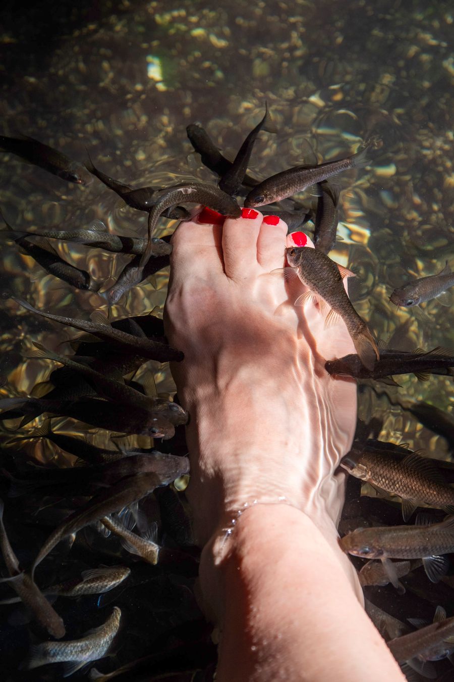 I mogliśmy spróbować peelingu rybkami. Bardzo dziwne uczucie.