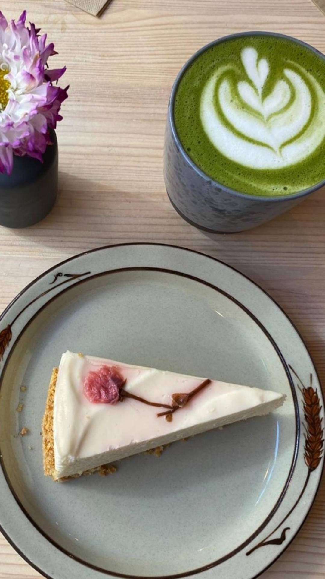 #fika #cafe #cake #sakura #sakuracake #macha #sweden #stockholm