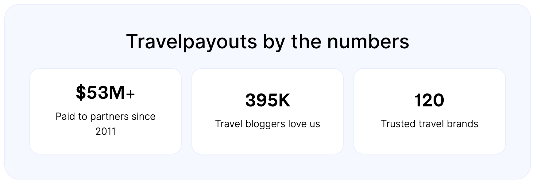 - TravelPayouts: This stands out as our top recommendation for travel bloggers. It's user-friendly, making it accessible even for beginners. More importantly, TravelPayouts curates collection a great collection of travel brands. We also like TravelPayouts because features competitive commission rates — usually on par with what you'd get if you went directly through a brand's in-house affiliate program.